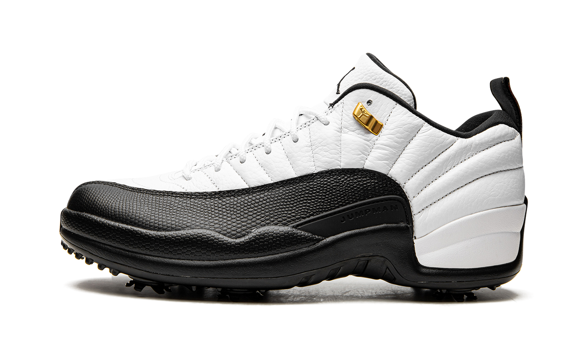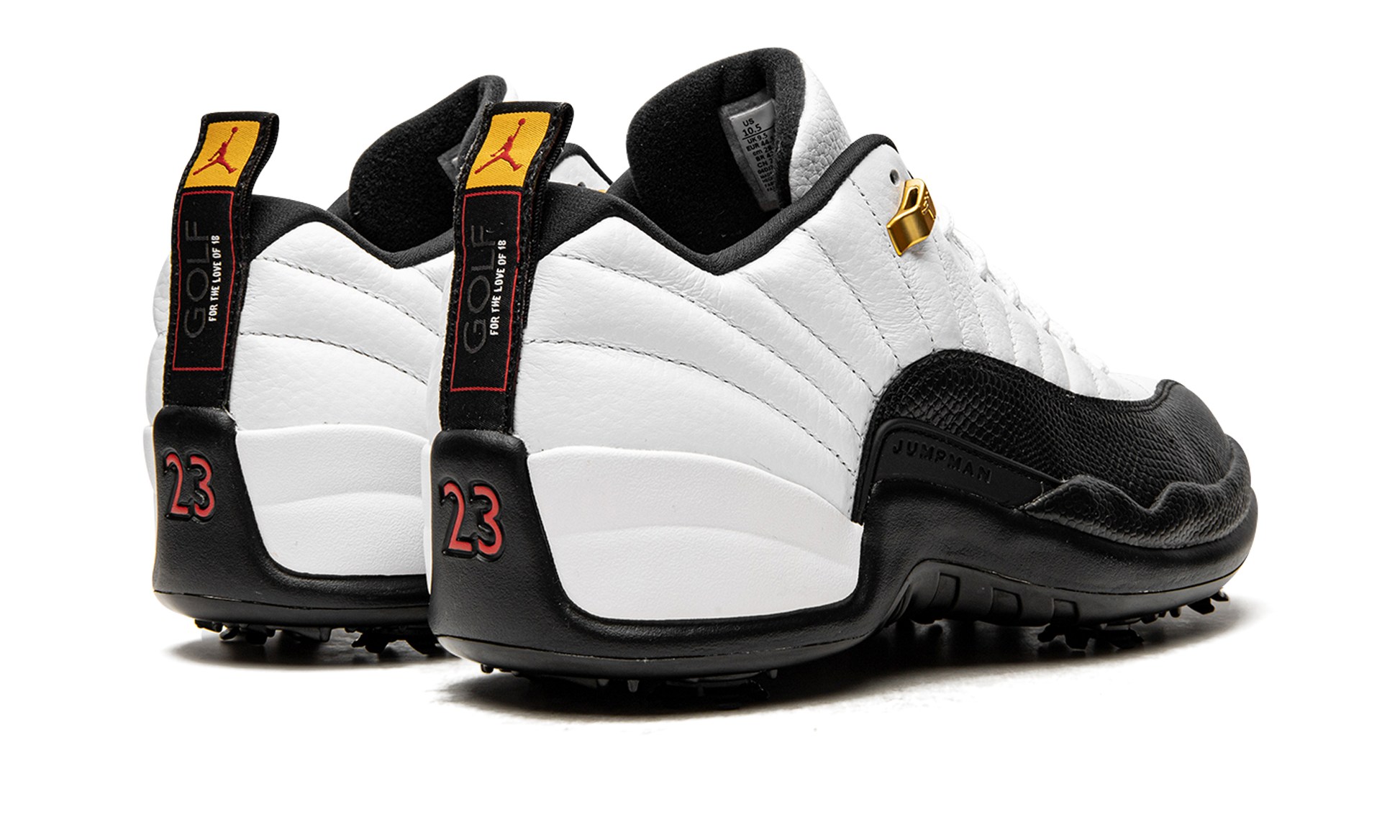 Jordan continues to bring the heat on the golf course with the Air Jordan 12 Low Golf “Taxi.” Inspired by the original Air Jordan 12 “Taxi,” this sneaker is layered in a white leather base with hints of black faux reptile on the heel and toe box along with gold accents on the lace loops and heel tabs.The jock tag inspired pull tab replaces “JORDAN” with “GOLF” and “Quality Inspired by The Greatest Player Ever” is replaced with “For The Love Of 18.” Lastly the silhouette includes a black sole unit complete with black golf spikes. Taxi