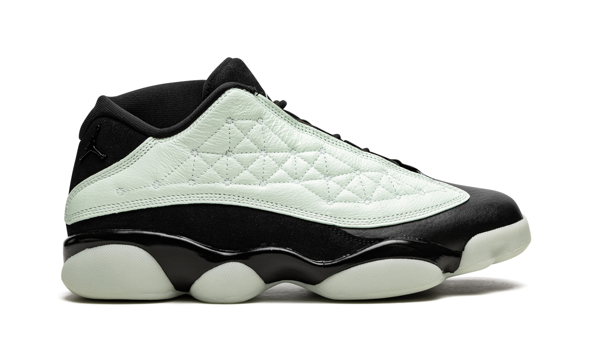 The Air Jordan 13 Low “Singles Day” is a November 2021 release of Michael Jordan’s thirteenth signature shoe in a colorway dedicated to the light-hearted, unofficial holiday of people not in relationships. Singles Day originated in China in the early ‘90s before becoming global in the 2010s. Landing on November 11th, or 11/11, Singles Day is also recognized as the biggest online shopping day in the world. As for the colorway, Jordan Brand arranges the low-top version of the vintage basketball shoe with a Barely Green leather upper that features a triangular geometric design. “Matrix” style “Air Jordan 0023,” “Air Jordan 2021,” and “1111” within the mint green leather design are made visible with glow-in-the-dark accenting. A black Jumpman emblem appears on the collar, a Barely Green Jumpman is embroidered on the black nylon tongue, and “Jordan” text appears on the vamp. A black midsole contrasts the mint green rubber outsole. Release date: November 11, 2021 Singles Day