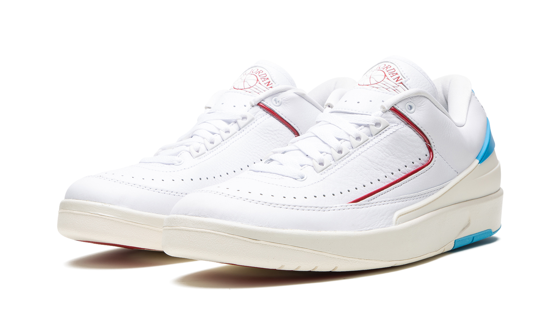 The Women’s Air Jordan 2 “UNC to Chicago” is a women’s-exclusive colorway of Michael Jordan’s second signature shoe that shows appreciation for his two former basketball teams. Originally appearing on the Air Jordan 1, the “UNC to Chicago” theme makes its way onto the Jordan 2 Low as part of the vintage basketball shoe’s comeback in 2022 and 2023. The design features the familiar color schemes of both the North Carolina Tar Heels and the Chicago Bulls, Jordan’s college and professional basketball teams. The shoe features a white leather construction with contrasting University Blue accenting on the heel, which is a nod to the Tar Heels. Fiery red detailing inspired by the Bulls’ primary team uniform color is found on the underlay on either side of the shoe. Red “Wings” branding appears on the tongue. The cream accenting on the back of the shoe and on the mid-panel gives the design a decidedly aged look. Release date: March 8, 2023 NC to Chi