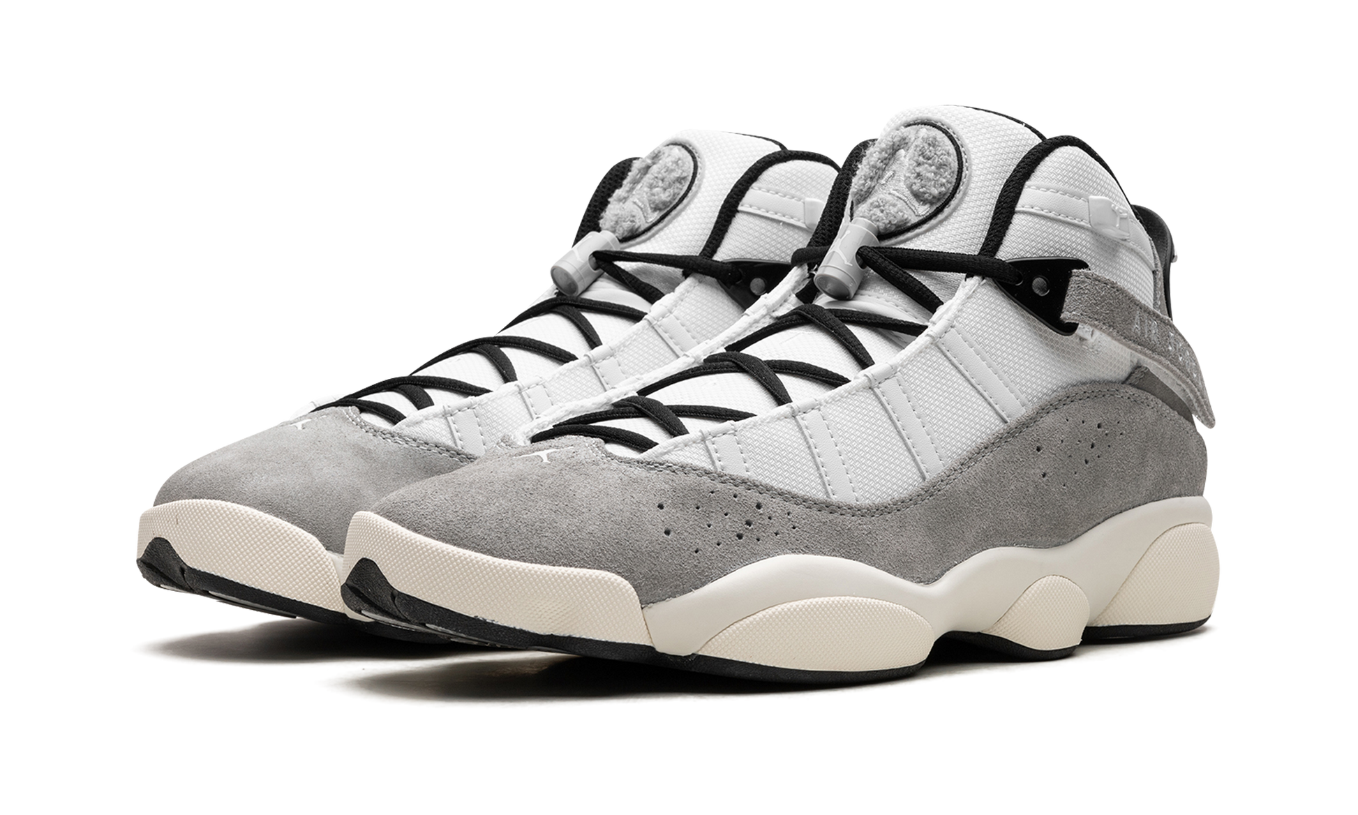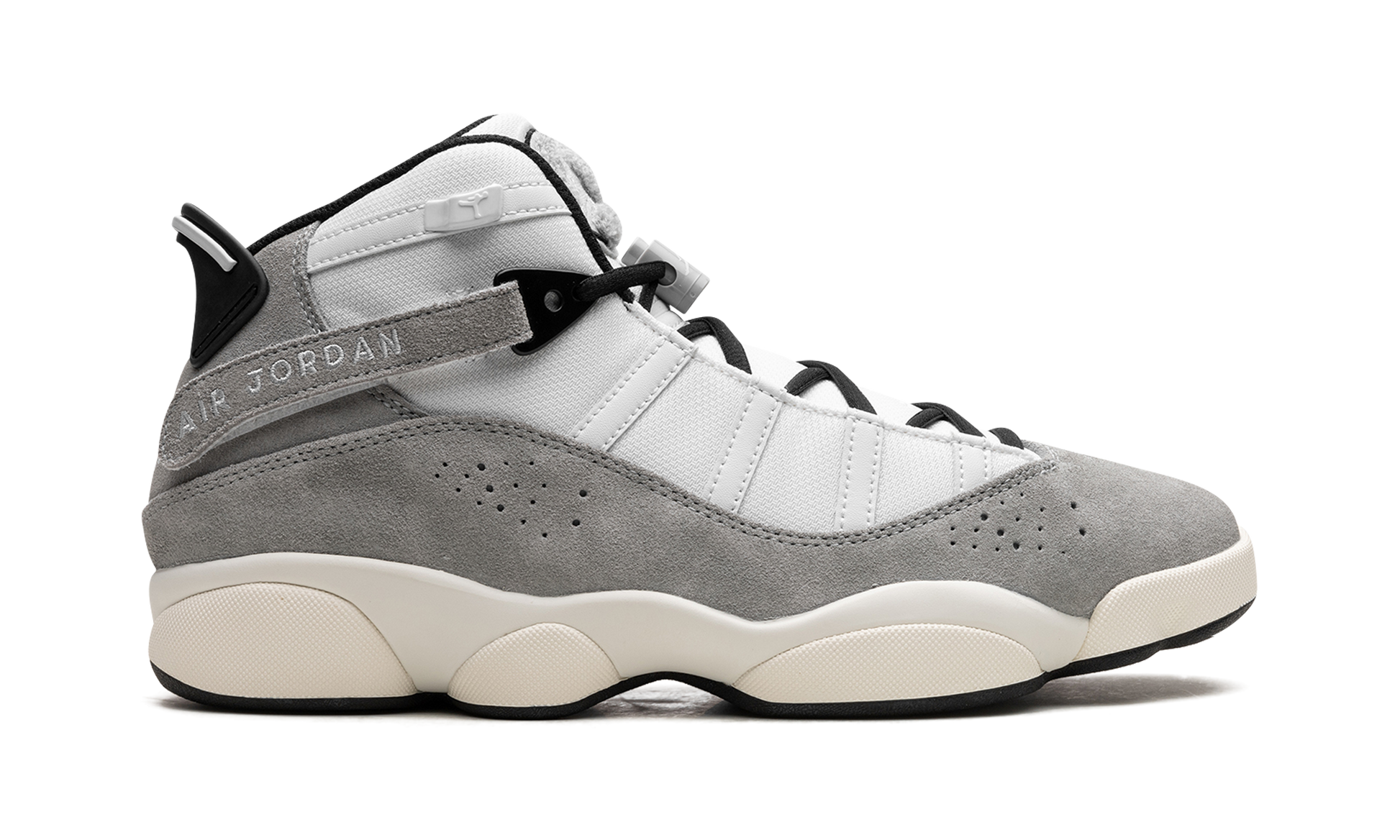 The Jordan 6 Rings “Cement Grey” is a neutral colorway of the hybrid sneaker that fuses elements of several classic Air Jordan sneakers. Debuted in the 2000s, the Jordan 6 Rings features elements of the Jordan models that were worn by Michael Jordan when he won his six NBA Championships with the Bulls in the 1990s. The “Cement Grey” features a white mesh upper with a Cement Grey suede mudguard. A grey chenille Jumpman patch, inspired by the Air Jordan 8’s design, appears on the tongue. Other features inspired by the Jordan 8 as well as the Air Jordan 11 and Air Jordan 12 complete the design. An icy blue translucent outsole sits below. Release date: June 8, 2023 Cement Grey