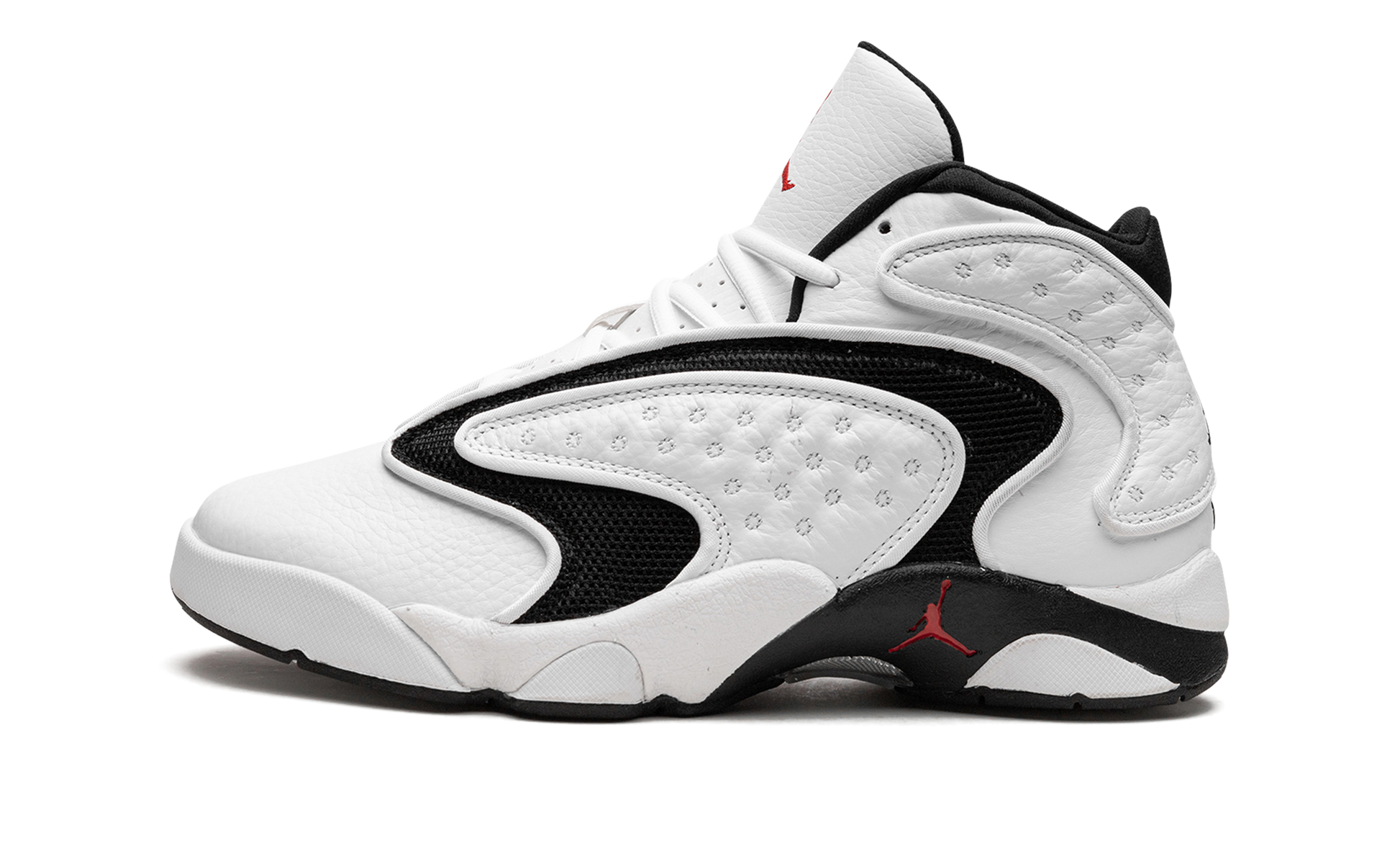 The Jordan Women’s OG “White/Black” is a retro of the late-90s silhouette that was inspired by and made for women basketball players. Debuting during Jordan Brand’s second year in 1998, the high-top was the brand’s first-ever women’s silhouette. The model borrows from the Air Jordan 13’s dotted leather upper and toe box. The tonal leather base is contrasted by wavy black mesh accenting. True-to-original embroidered Jumpman branding can be found on the heel with a black embroidered “W” graphic placed below. Fiery red Jumpman branding on both the stark white tongue and black midsole are finishing touches applied by Jordan Brand. The Jordan Women's OG basketball shoe released on January 16, 2020. White Black