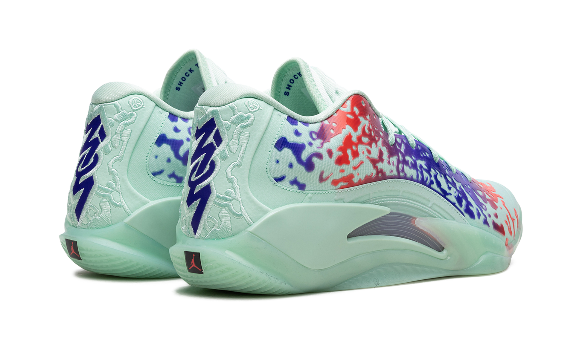 The Jordan Zion 3 "Mud, Sweat, and Tears" is a unique and eye-catching colorway of Zion Williamson’s third signature shoe with Jordan Brand. Inspired by Zion’s dedication to his craft on the hardwood, the “Mud, Sweat, and Tears” colorway is complete with a light green textile base contrasted with red and blue accents on the sides. A purple Jumpman logo can be seen on either side of the shoe while “Zion” detailing can be found on the heel. The shoe features a drop-in, Zoom Air cushioned unit in the midsole made of Formula 23 foam. Release date: October 18, 2023 Mud, Sweat, And Tears