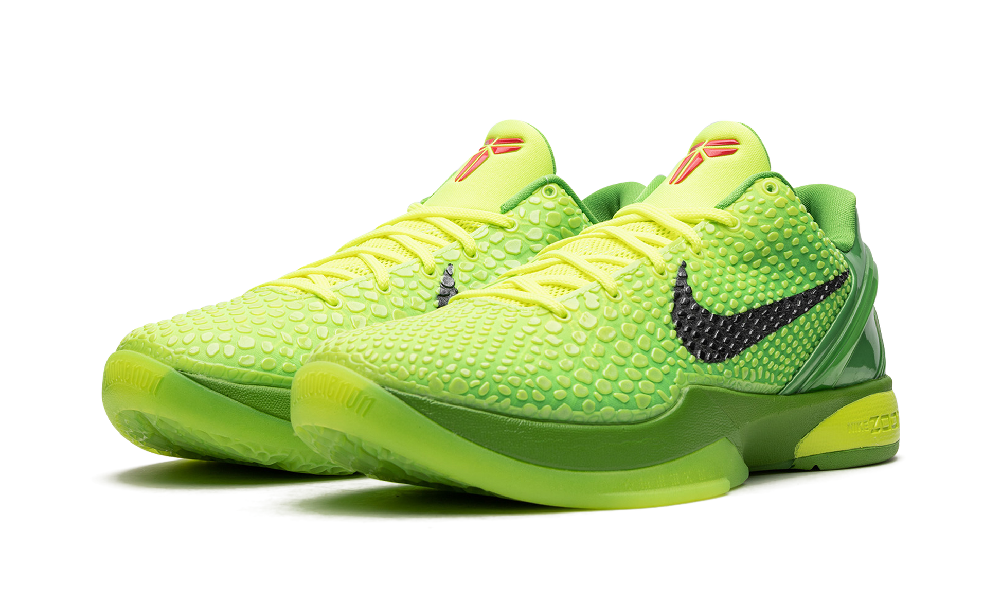 The Nike Kobe 6 “Grinch - Storyteller Collection” is a special collector’s edition of the popular colorway from Kobe Bryant’s signature shoe collection with Nike. Originally debuted by Bryant on December 25, 2010 during the Los Angeles Lakers vs. Miami Heat showdown, the Nike Kobe 6 “Grinch” was brought back by Nike a decade later as the model’s first retro re-release. The updated version of the design modeled after the grumpy Dr. Seuss character features the same scaly snake-inspired electric green upper as the OG “Grinch” colorway. Other details include a molded heel for stability, black Swoosh detailing on either side, and Bryant’s “Sheath” logo in red on the green nylon tongue. Per the original spec, Nike places its performance Zoom Air cushioning technology in the midsole for unparalleled comfort on or off court. The “Storyteller Collection” comes with special packaging and set of books. Grinch