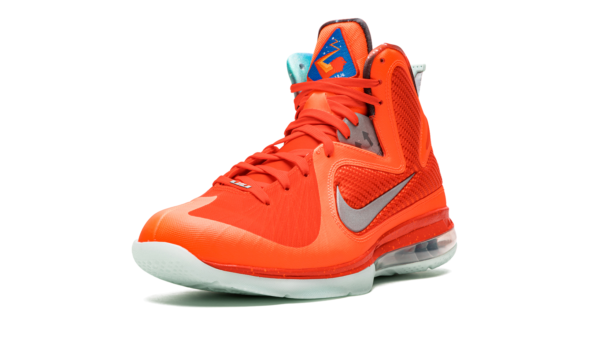 The Nike LeBron 9 “Big Bang 2022” is the February 2022 re-release of the head-turning colorway of LeBron James’s ninth signature shoe that was originally released over NBA All-Star Weekend in 2012. The original “Big Bang” Nike LeBron 9 was one of multiple All-Star colorways by Nike included in the famous “Galaxy” collection that also contained the rare, ultra desirable Nike Air Foamposite One “Galaxy.” Inspiration for the “Big Bang” and the “Galaxy” collection came from the Kennedy Space Center, NASA’s headquarters in Florida which is located near Orlando, the site of the 2012 All-Star Game. The modern “Big Bang” is a near one-to-one remake of the original colorway. The shoe features a Total Orange mesh construction with a contrasting reflective Swoosh on the sides. The translucent glow-in-the-dark outsole sits beneath a large visible Air bubble on the heel. “Galaxy” print on the interior lining to complete the look. Release date: February 18, 2022 Big Bang 2022
