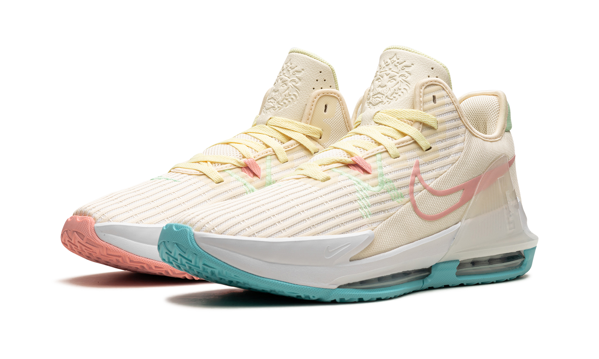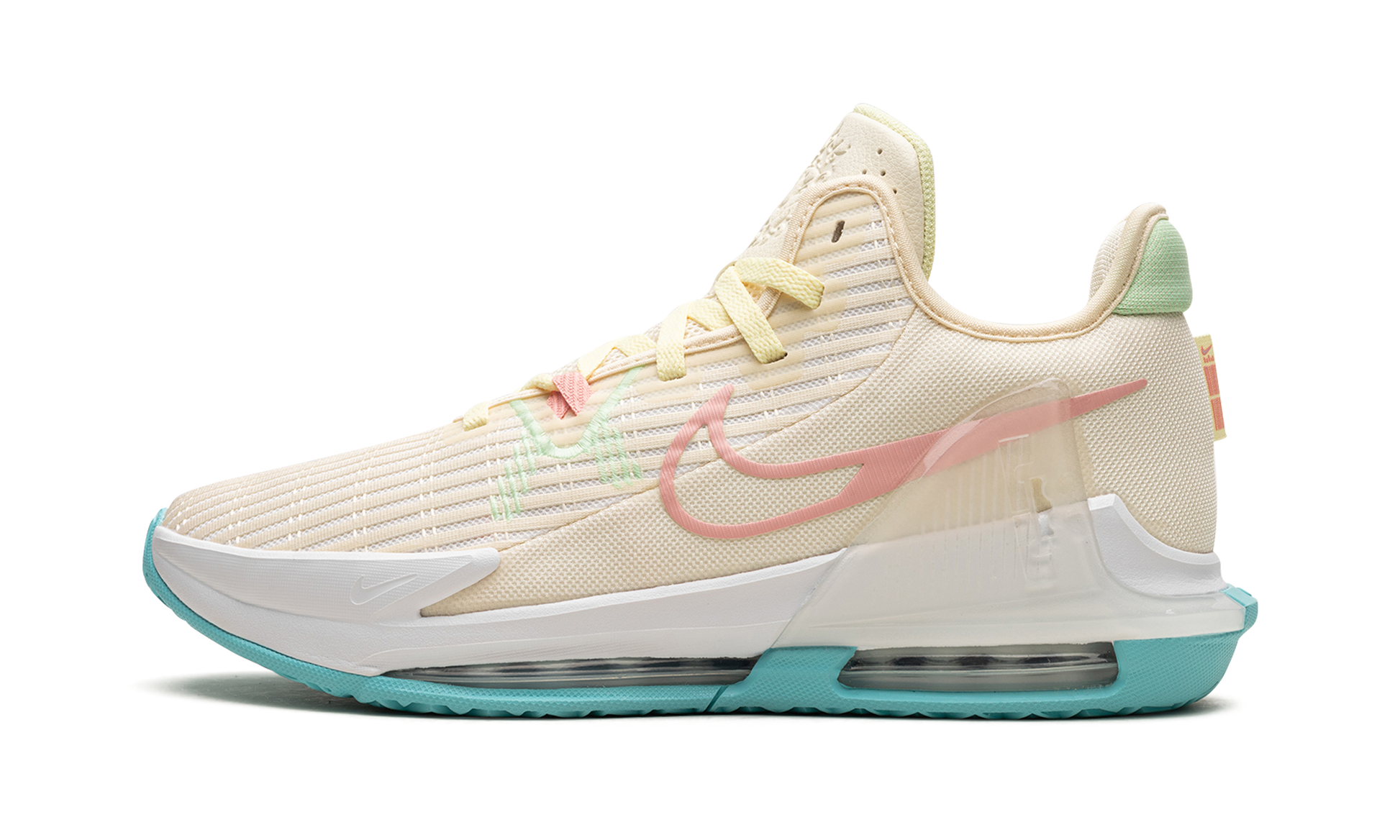 The Nike LeBron Witness 6 “Easter” is a colorway of the alternate version of LeBron James’s sixth signature basketball shoe with an Easter-inspired look. The colorway is complete with a yellow ribbed mesh upper that’s contrasted with pastel hues throughout the design. A pastel pink outline Swoosh appears on both sides. Pastels in pink and green are incorporated onto different design elements. Underfoot, the white rubber midsole with full-length Air Max cushioning is contrasted with a teal rubber outsole on the left shoe and a pink rubber outsole on the right shoe. Release date: May 1, 2022 Easter