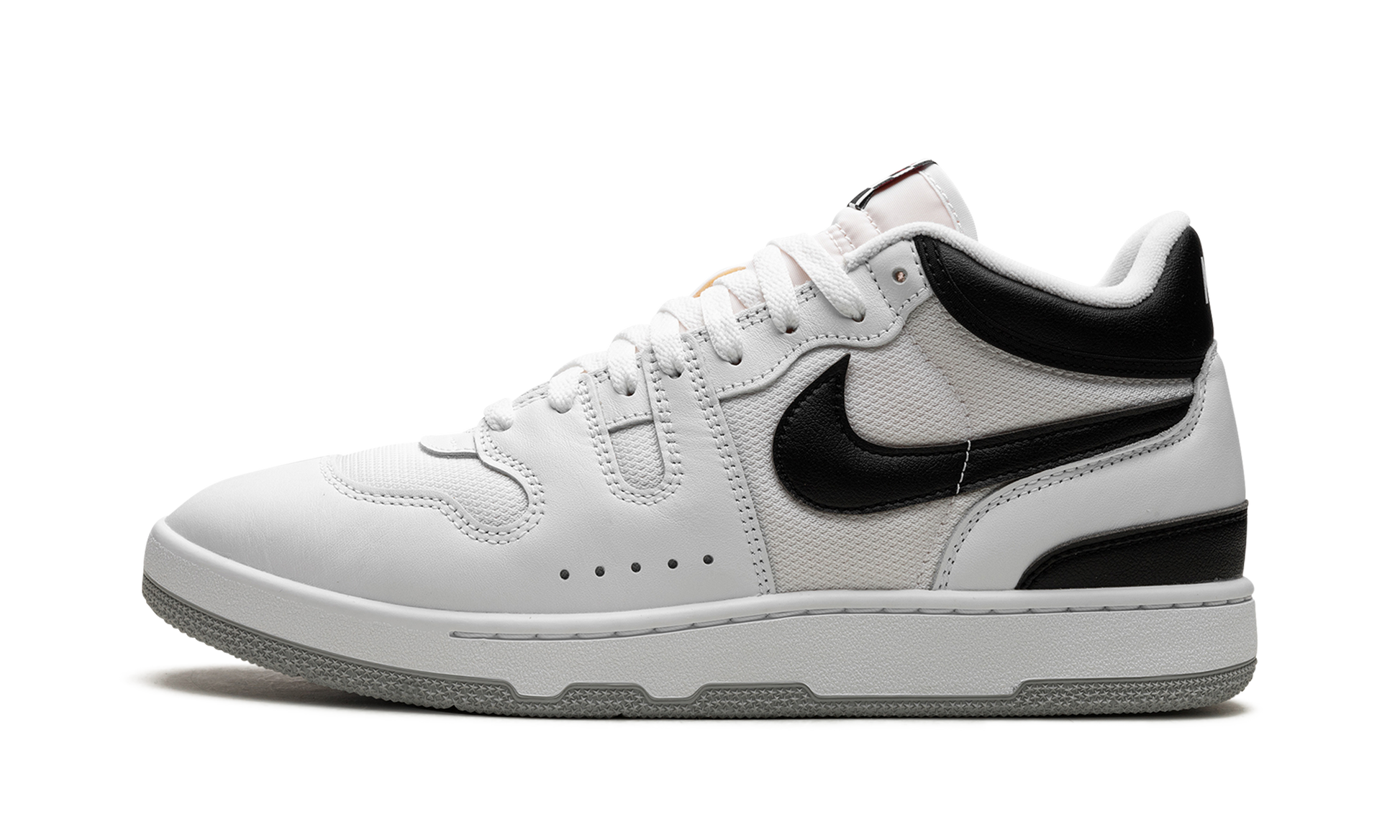 The Nike Mac Attack "White/Black" is a versatile, two-tone colorway of the retro tennis shoe. Worn by tennis legend John McEnroe in the mid-1980s, the Mac Attack was one of Nike’s first tennis shoes to achieve mass popularity. The “White/Black” colorway is one of multiple styles released by Nike in 2023. The upper features a white mesh base with white leather overlays. A black leather Swoosh appears on the side to match the black leather collar. The shoe’s signature checkerboard-patterned tag appears on the tongue. Release date: September 7, 2023 White/Black