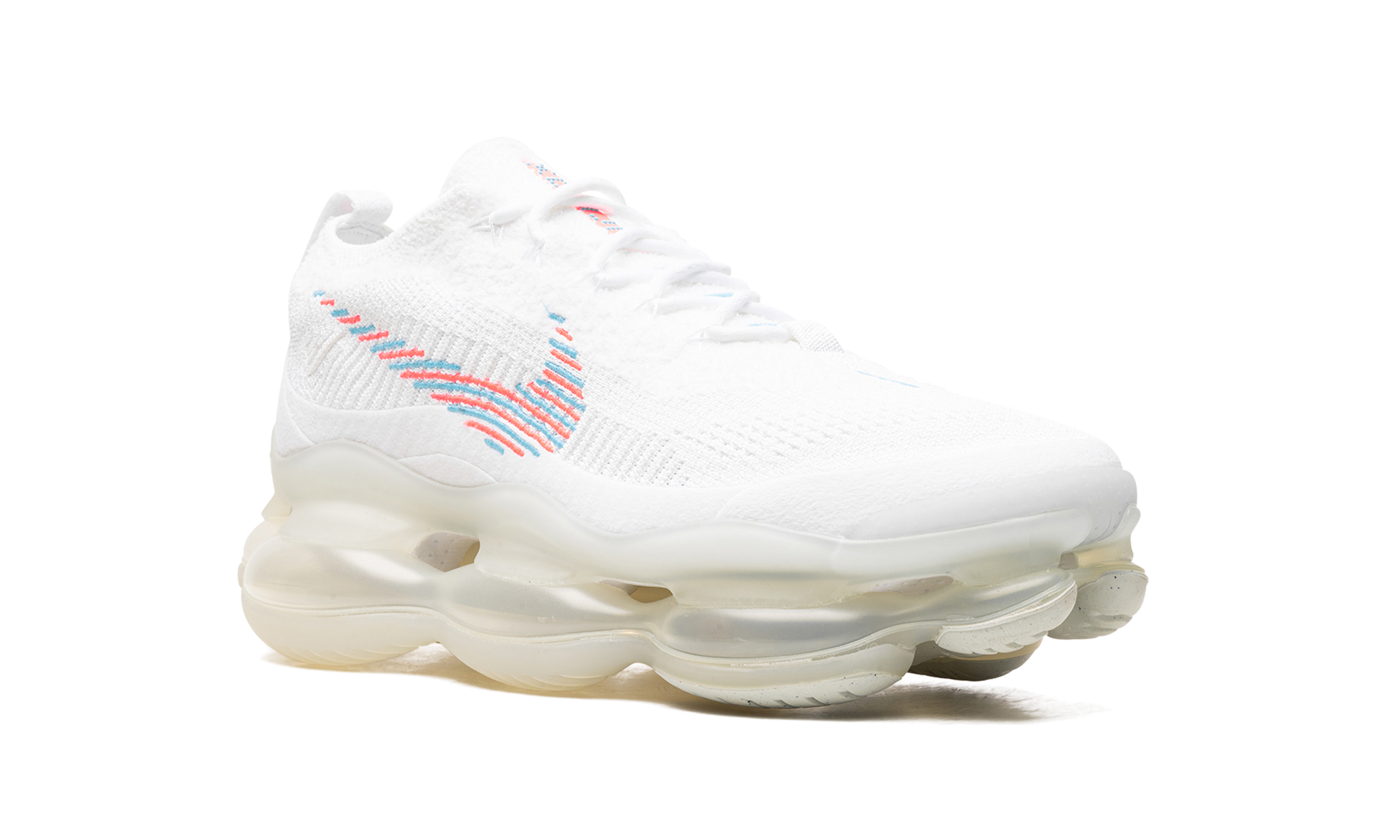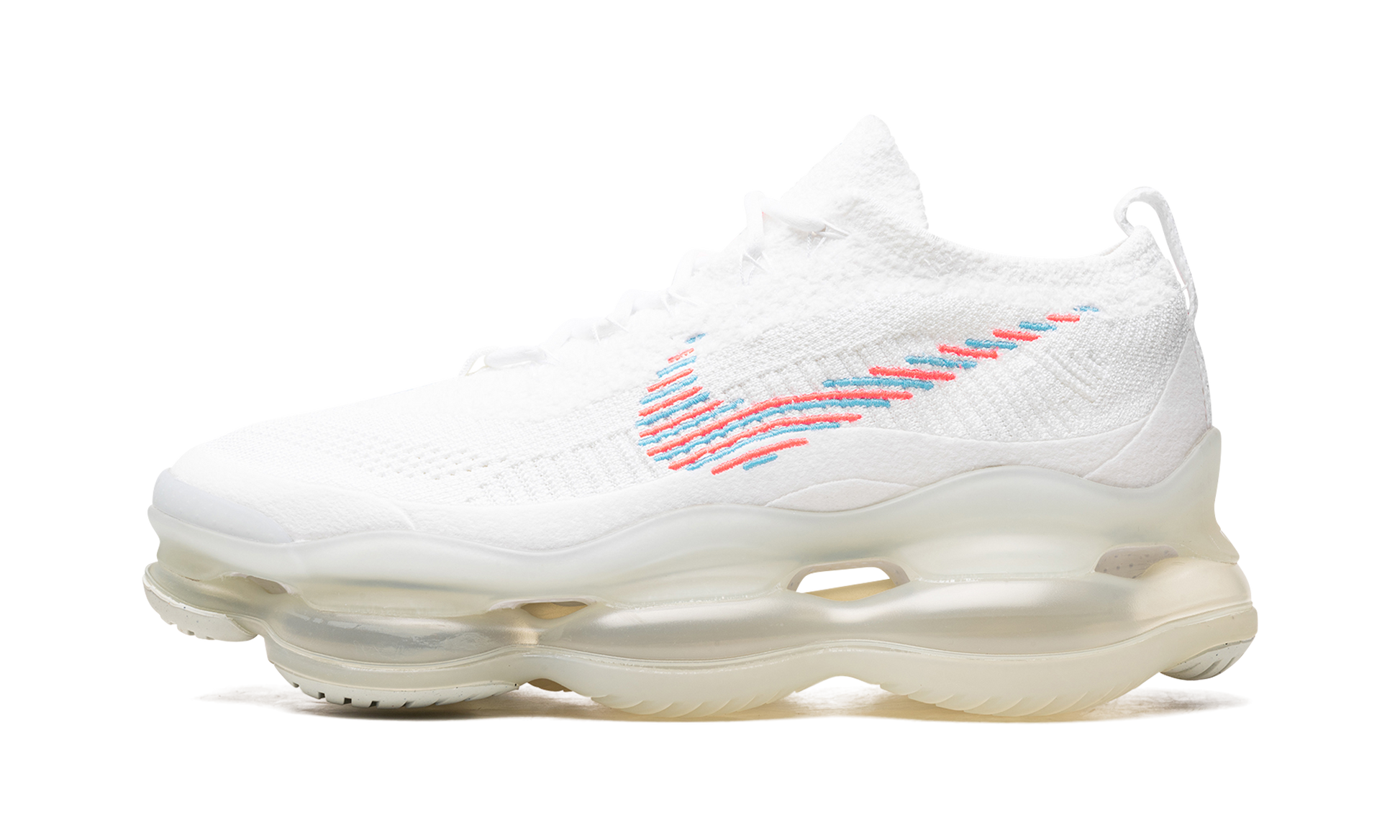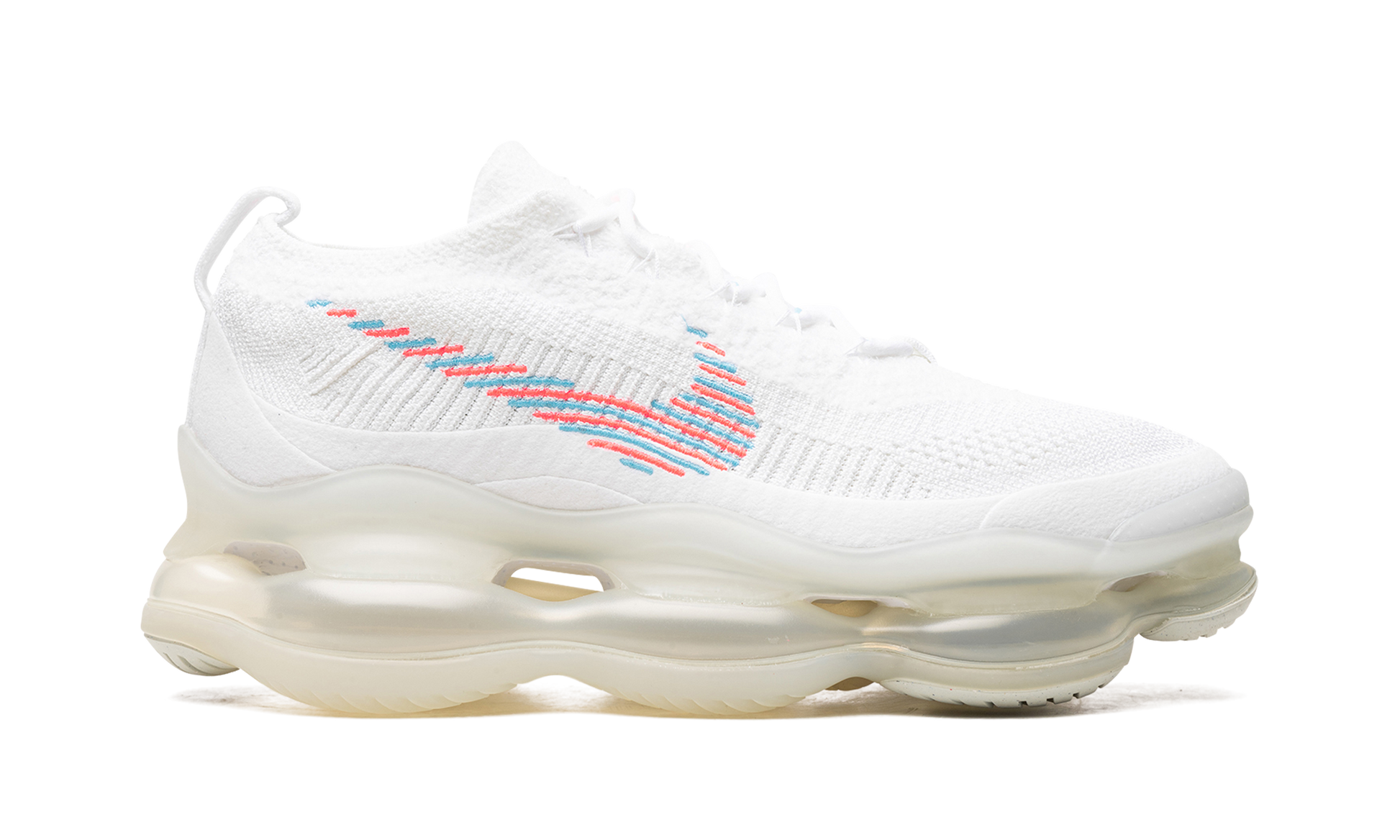 The Nike Air Max Scorpion "Lagoon Pulse/Hot Punch" is a clean colorway of the lifestyle shoe with a unique, exaggerated midsole design. The Air Max Scorpion in the “Lagoon Pulse/Hot Punch” colorway has a white Flyknit construction with a braid-like Lagoon Pulse and Hot Punch woven Swoosh on the side. A semi-translucent TPU mudguard spans the shoe. Underfoot, an exaggerated midsole with oversized Air bubbles that gives the silhouette a platform-style appearance completes the bold look. Release date: June 28, 2023 Lagoon Pulse