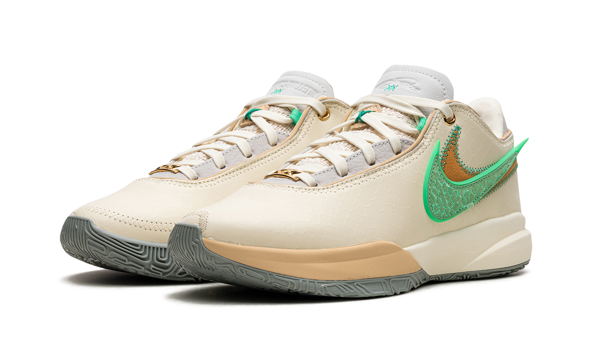 The FAMU x APB x Nike LeBron 20 "Coconut Milk" is a three-way collaboration between Florida A&M University, the sneaker and streetwear retailer, and Nike on LeBron James’s twentieth signature shoe. One of two colorways by FAMU, APB, and Nike, the Nike LeBron 20 “Coconut Milk” is dressed in a Peach Cream leather design with layered Swooshes in Mica Green faux reptilian leather and Vivid Orange tumbled leather on the sides. The phrase, “All Points Bulletin” is debossed on the right tongue and Nike LeBron branding is debossed on the left tongue. An “A&M” patch appears on the heel and FAMU’s snake mascot and APB branding are printed on the insoles. Release date: May 9, 2023 FAMU x APB - Coconut Milk