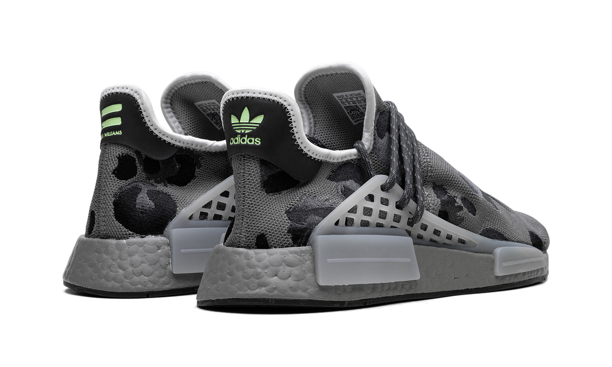 The Pharrell x adidas NMD Hu “Animal Print - Grey” is a neutral colorway of Pharrell’s popular signature shoe inspired by nature. The NMD Hu “Animal Print” in the “Grey” design features an eye-catching cheetah print pattern on its grey Primeknit upper. The look is balanced out with tonal rope laces that are integrated into the translucent TPU midfoot “cage” anchored onto the midsole. Dual adidas and Pharrell branding appears on the heel tab. Underfoot, a grey Boost foam midsole provides the wearer with a responsive ride. Release date: November 23, 2022 Animal Print Grey