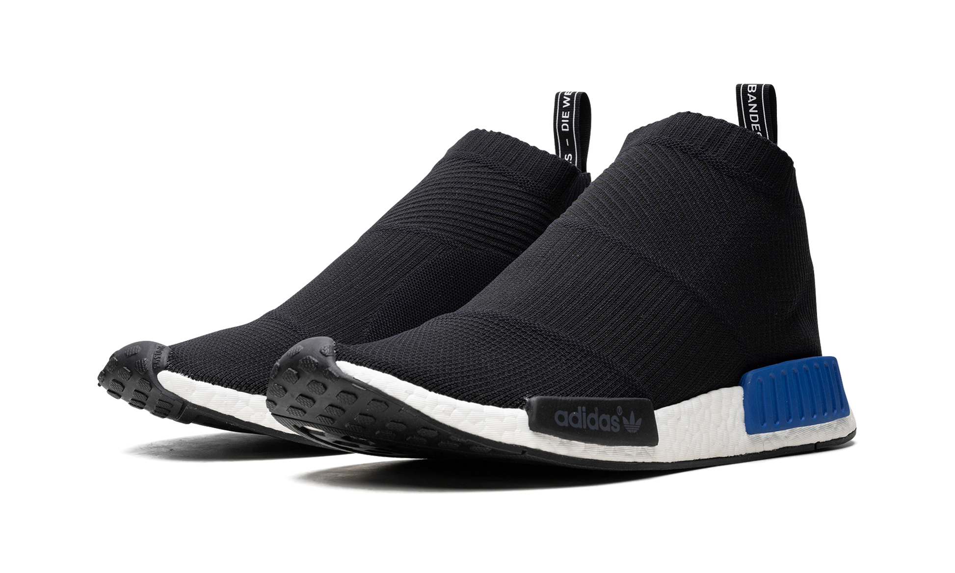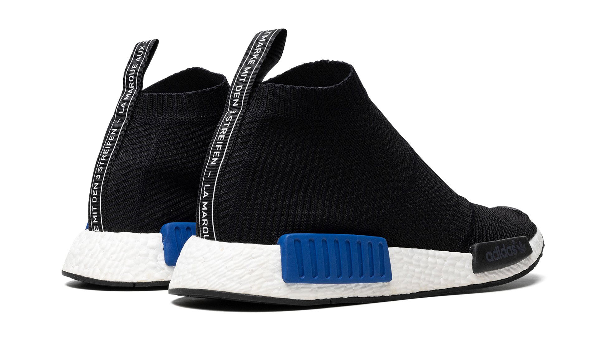 The City Sock iteration of the popular adidas NMD is up for grabs here in its all-black Primeknit upper with bright blue contrast for the rear midsole inserts. CITY SOCK