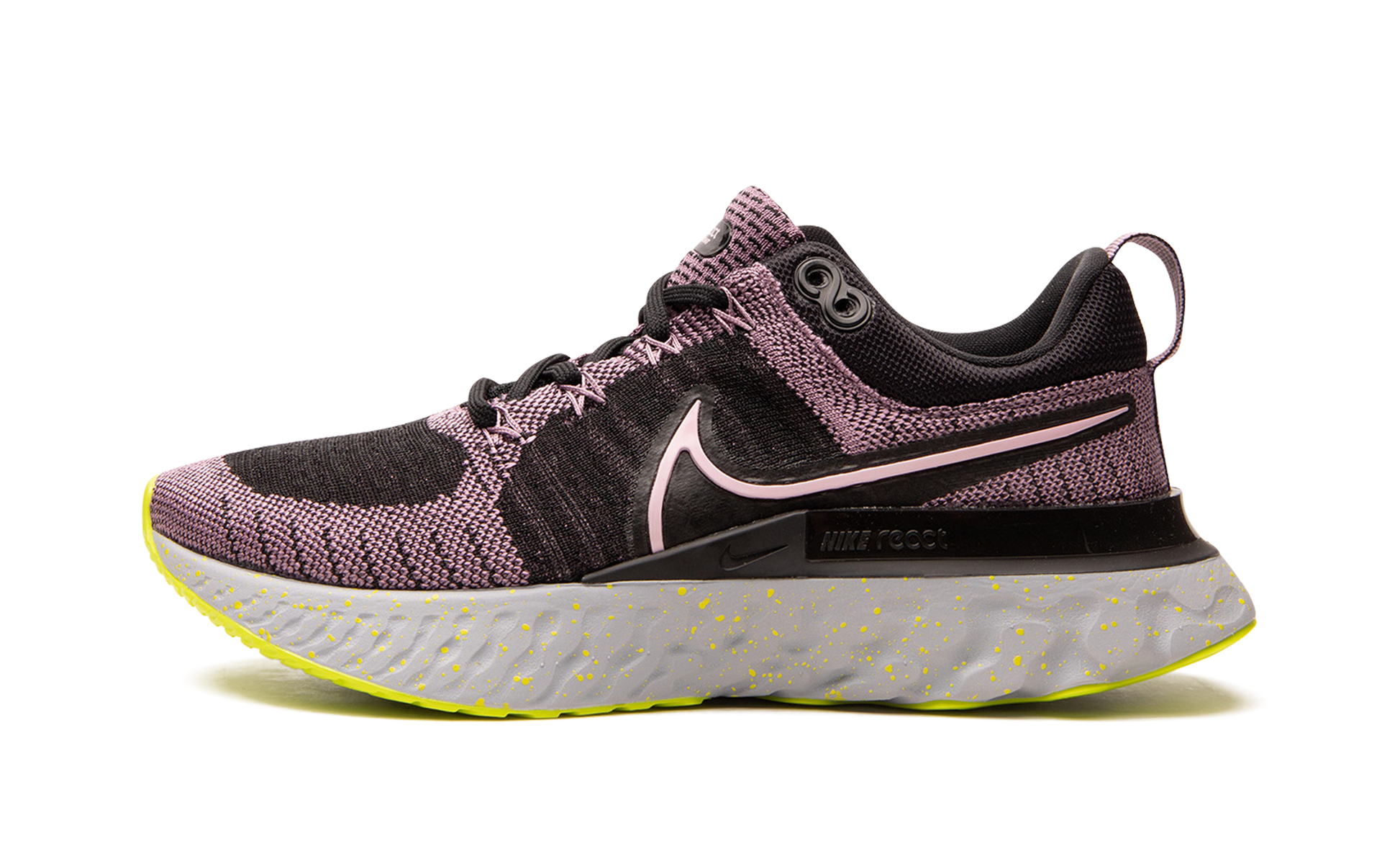 The Nike Reach Infinity Run Flyknit is a performance running shoe with a thick sole that takes the edge off of hard-surface running. And the greatest benefit of the Nike running shoe? Whether you're running or not, it can be an all-day option to wear. The advanced Flyknit upper has a snug, one-piece fit, ample arch support, and guide rails that add stability. A rocket-shaped React foam midsole provides an easy heel-to-toe transition, so the shoe is soft yet responsive underfoot. This colorway features two shades of gray, dusty pink, and bright yellow.