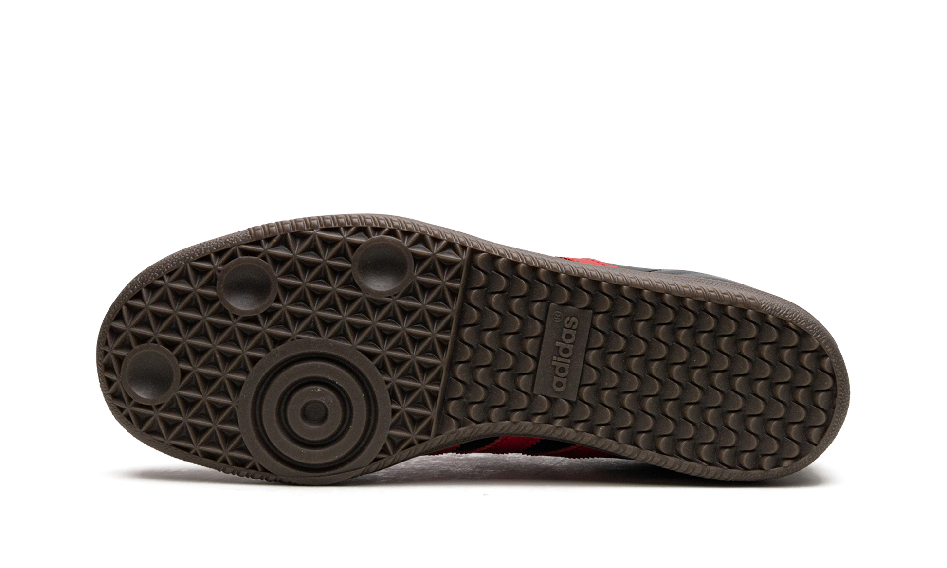 The adidas Samba “Manchester United” is a special colorway of the iconic sneaker for fans of the storied soccer club. Manchester United’s colors and branding found on its kits are applied to the adidas Samba to great success. The shoe is complete with a black leather base with red leather Three Stripes detailing on the sides. Additional red leather can be found on the heel. A “Manchester United” graphic is located on the tongue. A dark gum rubber sole completes the look. Manchester United