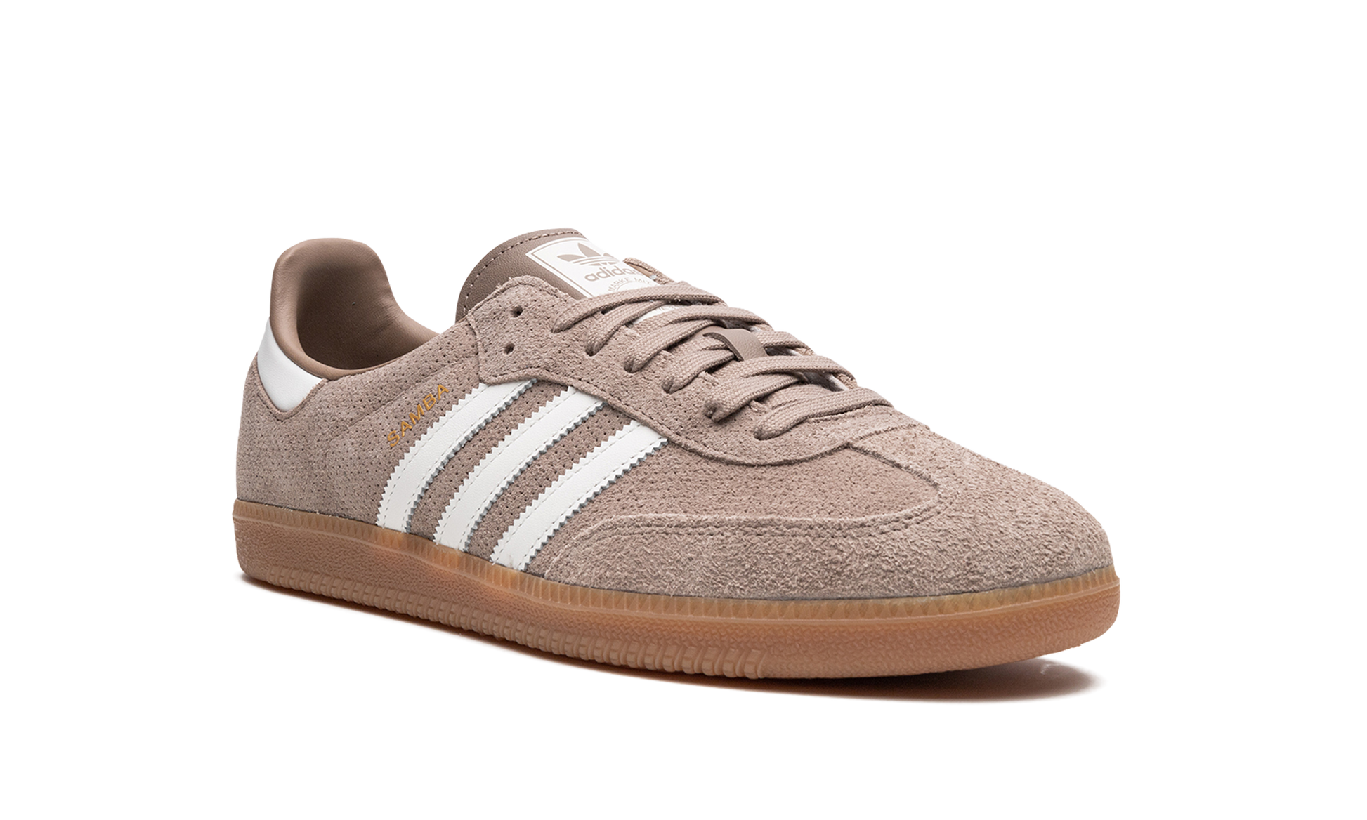 The adidas Samba OG “Chalky Brown/Gum” is a colorway of the retro indoor soccer and lifestyle shoe with an earth tone design. Endlessly versatile, the adidas Samba OG’s “Chalky Brown/Gum” colorway gives the shoe that enjoyed a resurgence in popularity in recent years a decidedly easy-wearing makeover. Chalky Brown perforated suede forms the base of the shoe. A tonal hairy suede overlay is found on the toe. Adidas’s signature Three Stripes branding is rendered in white leather on either side, and “Samba” branding appears in gold foil print. More classic “adidas” branding can be found on the tongue. A gum rubber sole completes the look. Chalky Brown Gum
