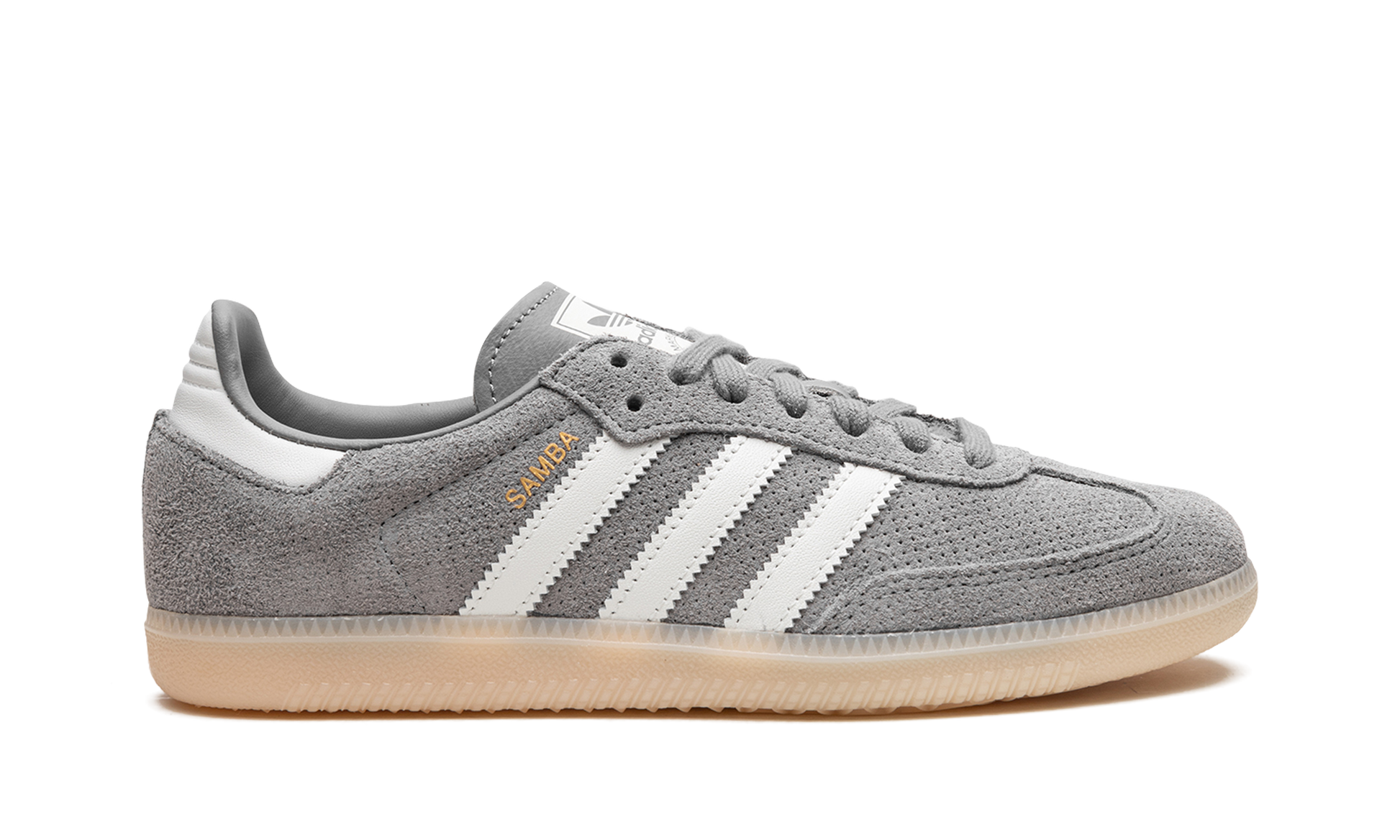 The adidas Samba OG “Grey Bliss” is a neutral colorway of the popular retro indoor soccer and lifestyle shoe. The Samba was one of the most in-demand sneakers of the year in 2022, and its popularity hasn’t cooled off since then as the shoe has been featured in a number of big-name collaborations and been released in appealing colorways like the “Grey Bliss.” The shoe has a grey perforated leather construction with white leather Three Stripes logos on each side. “Samba” branding appears in gold foil lettering on the lateral side of the shoe’s Three Stripes logo. A classic adidas graphic is found on the tongue. Underfoot, a semi-translucent gum rubber sole completes the look. Grey Bliss Orange