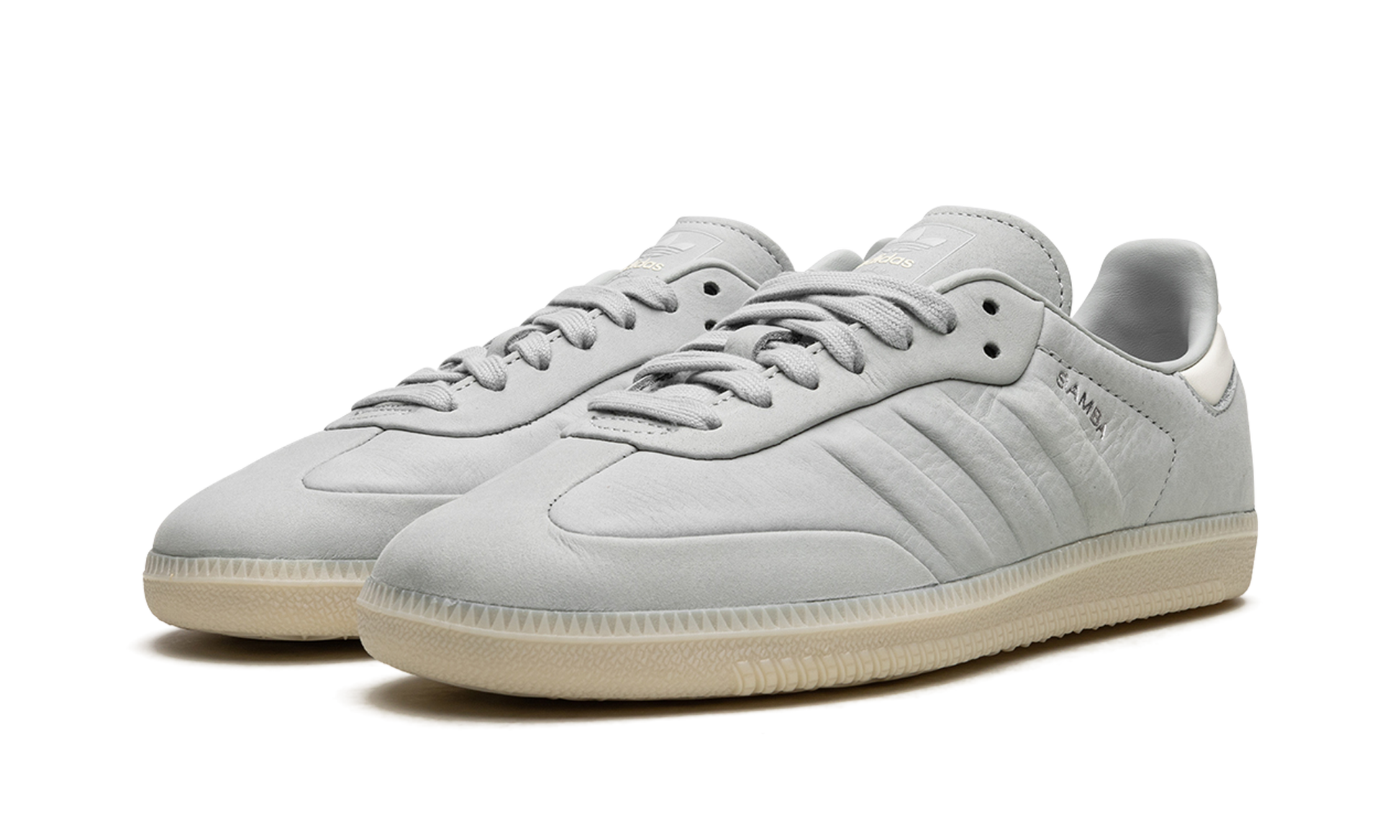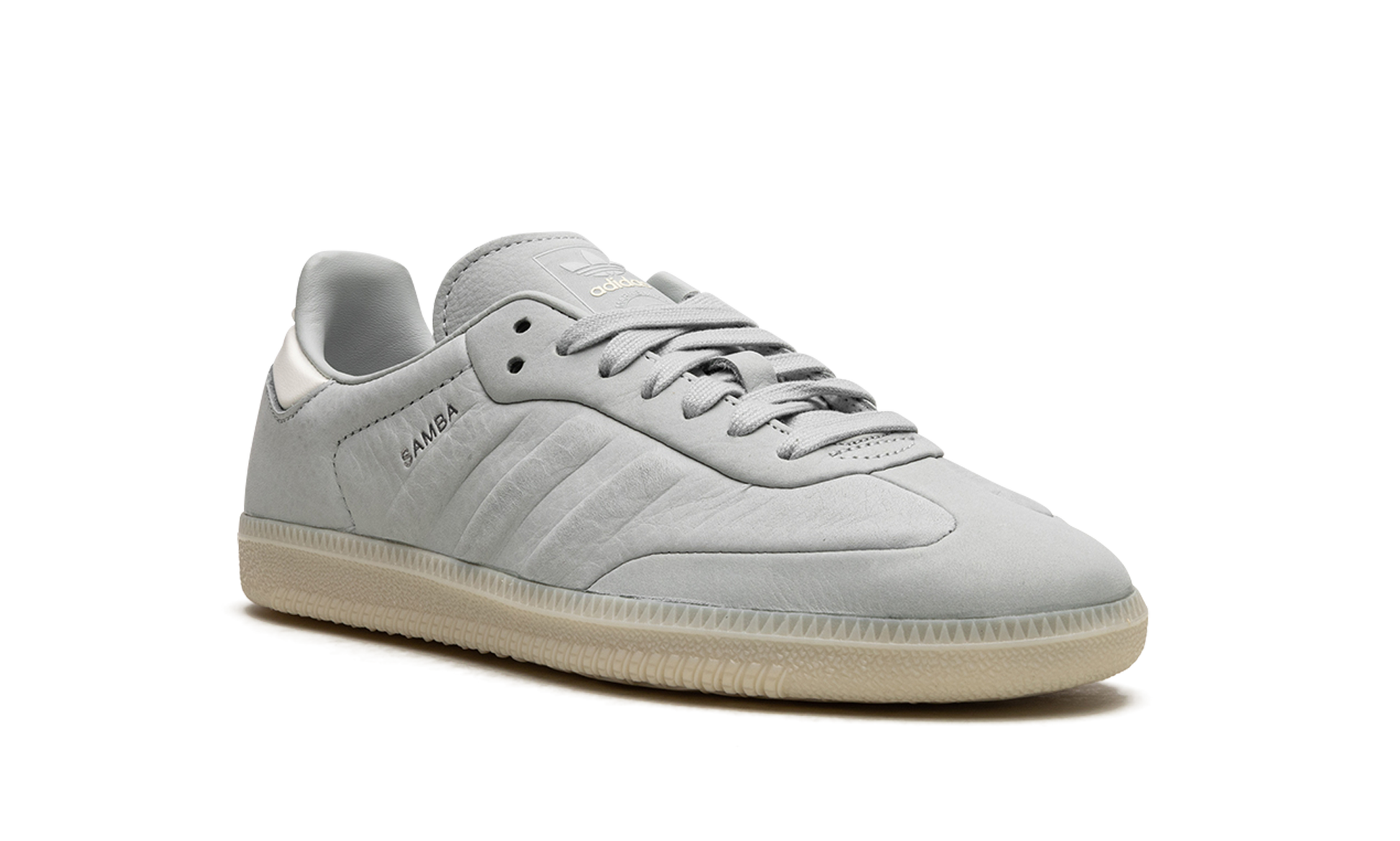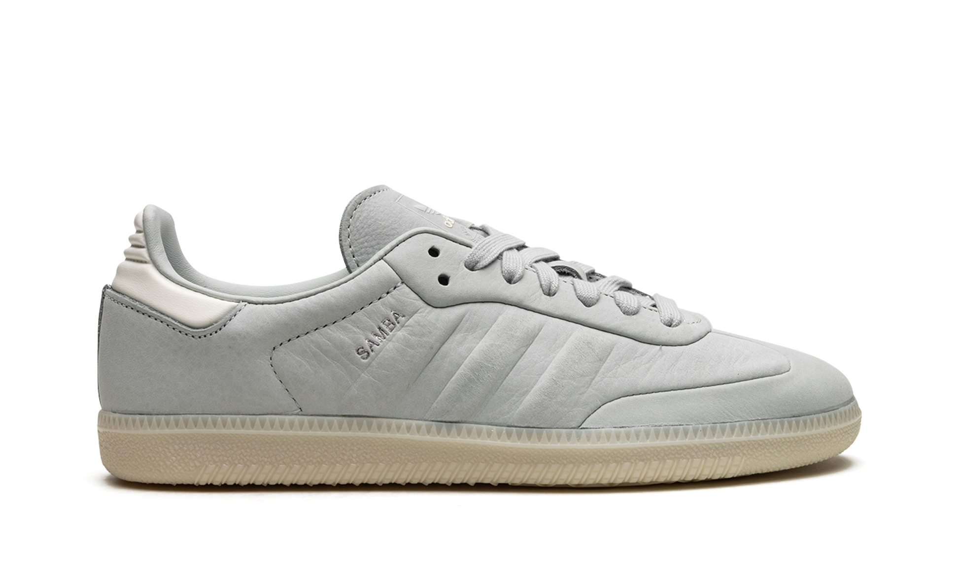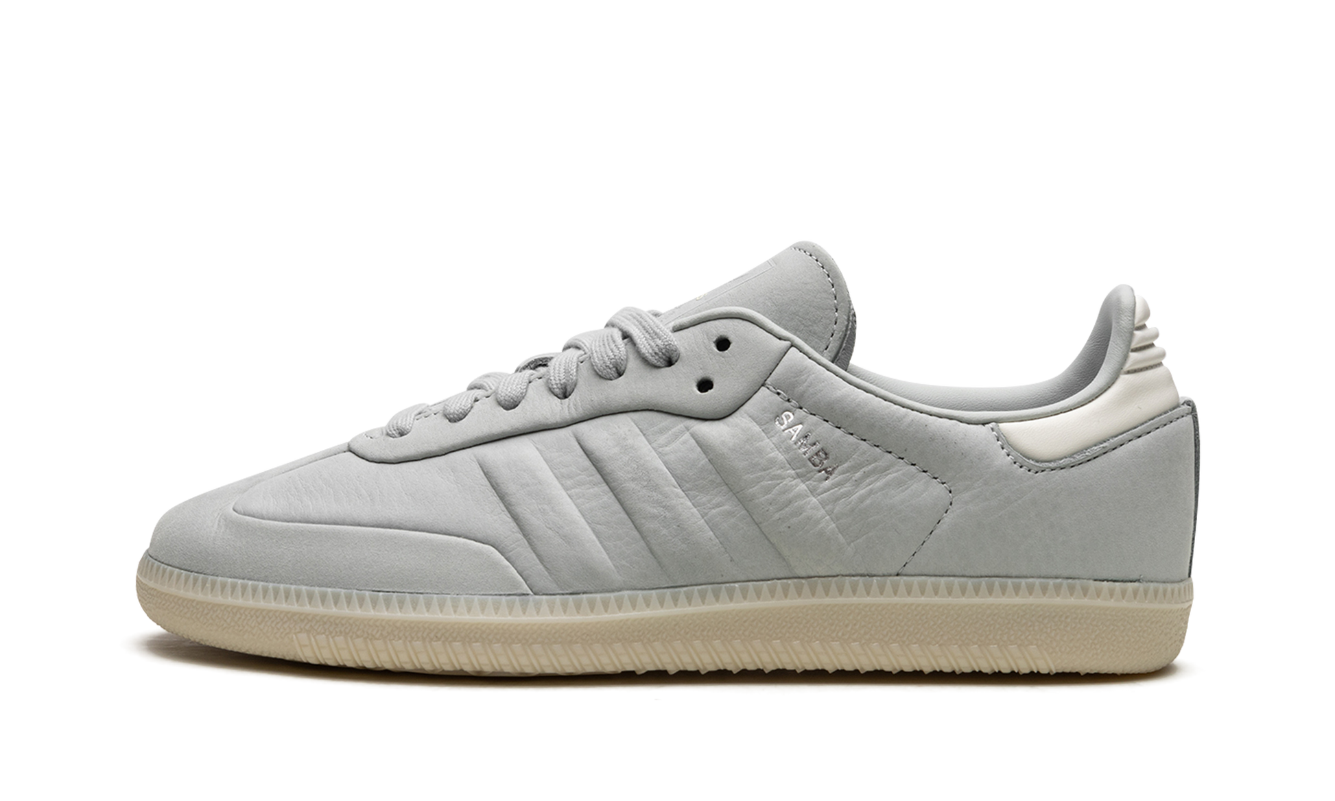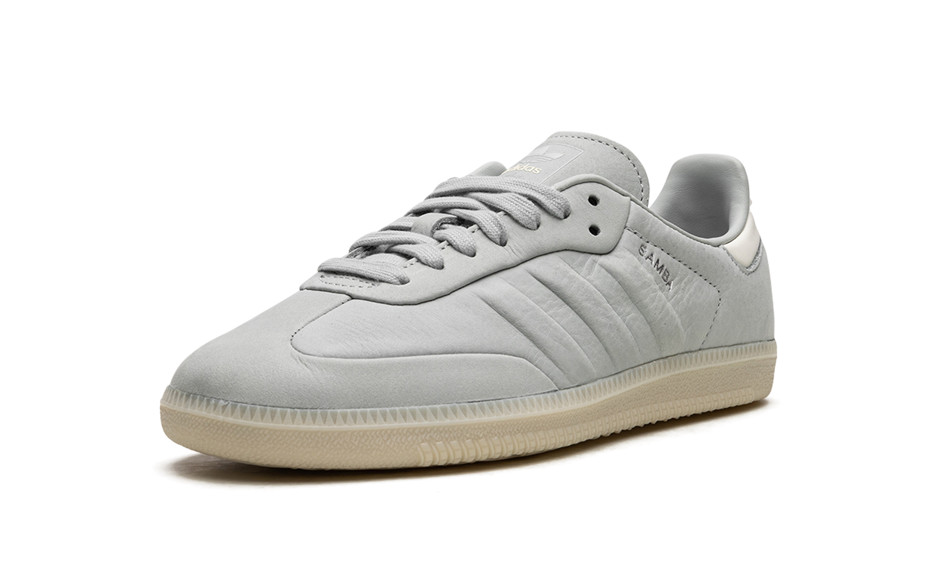 The adidas Samba “Wonder Silver” is a minimalist colorway on the retro indoor soccer sneaker with a unique design. The colorway features a Wonder Silver-colored leather construction with tonal Three Stripes on the sides and tonal overlays on the toe and forefoot. “Samba” branding appears next to the raised Three Stripes logo on the lateral side of the shoe. Debossed “adidas” detailing appears on the tongue. A semi-translucent gum rubber sole completes the look of the versatile and casual colorway. Samba