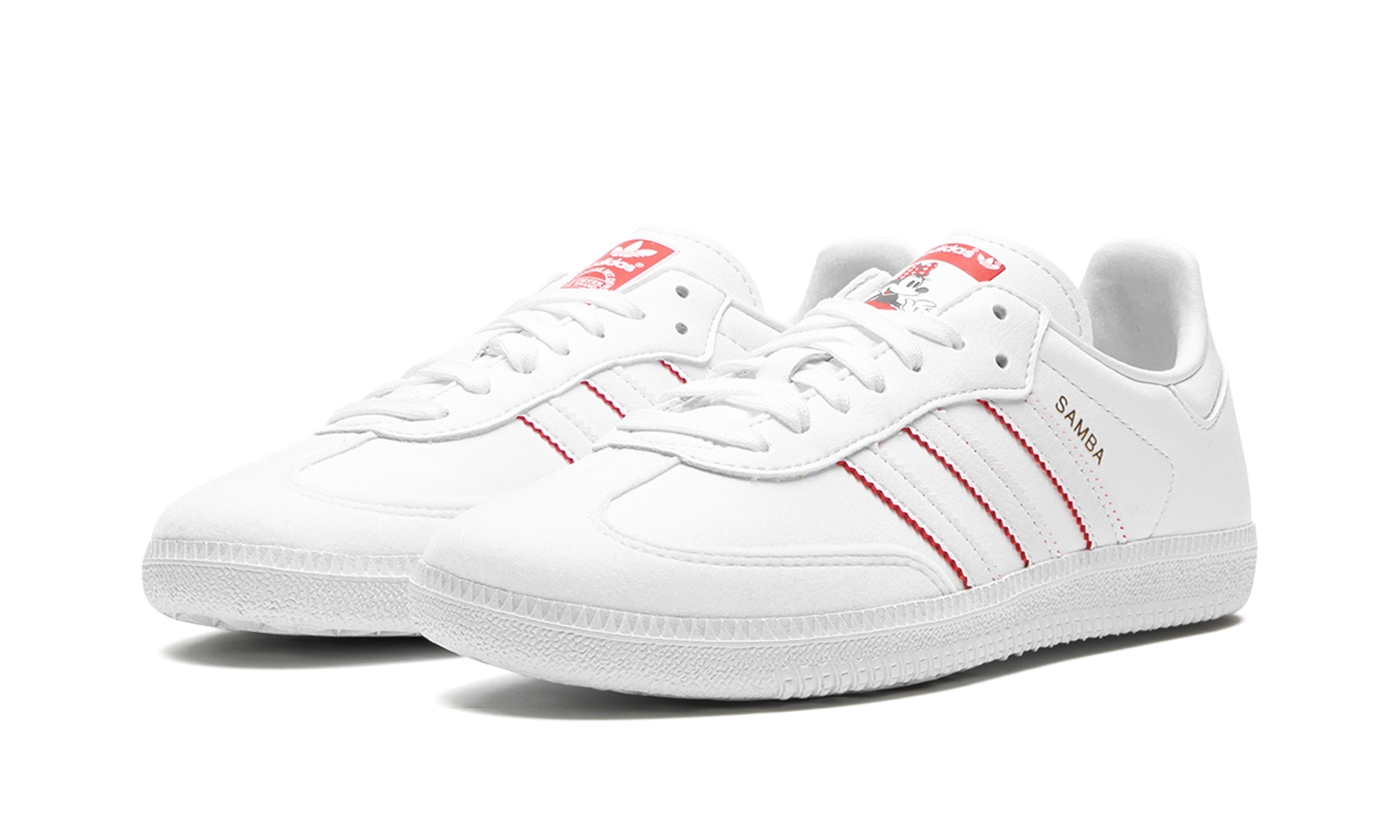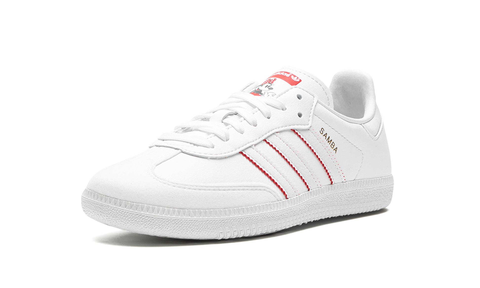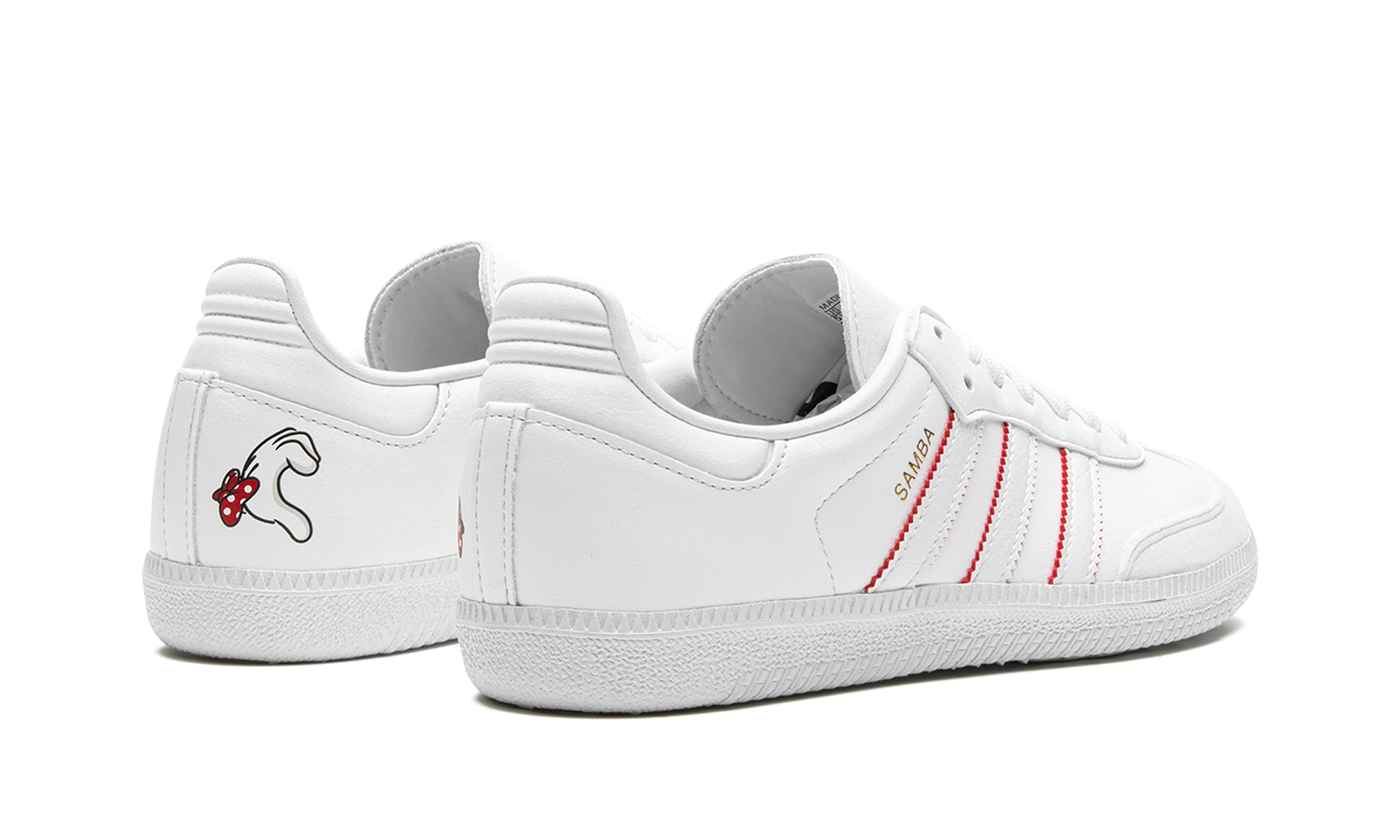 The adidas Samba Vegan "Minnie Mouse” is a creative colorway of the eco-friendly version of the popular lifestyle shoe that is inspired by the iconic Disney character. The adidas Samba Vegan “Minnie Mouse” joins the Samba’s “Mickey Mouse” colorway in celebrating Disney’s 100th anniversary in 2023. The shoe features a white vegan leather design with “Samba” branding next to the classic Three Stripes detailing with red accents on the sides. Additional red accenting can be found on the tongue, which is inspired by Minnie’s red outfit. Minnie’s hands are found on the heel of the left and right shoe and form a heart design. Release date: April 27, 2023 Minnie Mouse
