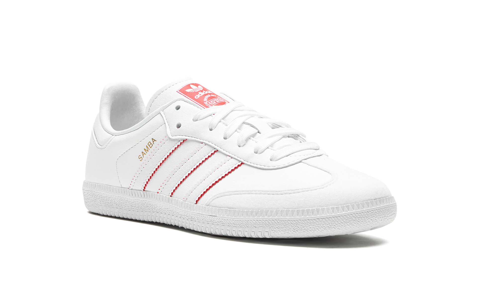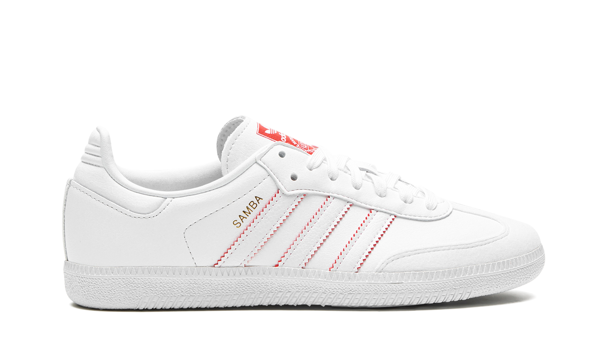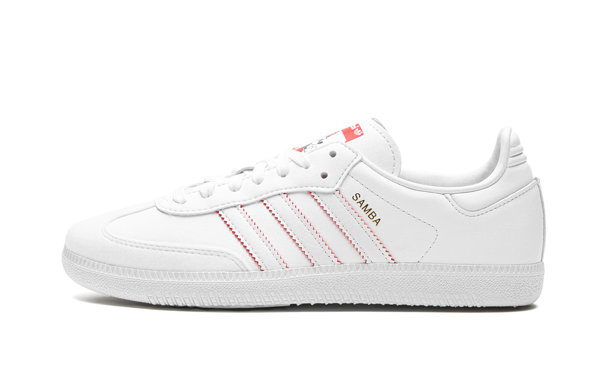 The adidas Samba Vegan "Minnie Mouse” is a creative colorway of the eco-friendly version of the popular lifestyle shoe that is inspired by the iconic Disney character. The adidas Samba Vegan “Minnie Mouse” joins the Samba’s “Mickey Mouse” colorway in celebrating Disney’s 100th anniversary in 2023. The shoe features a white vegan leather design with “Samba” branding next to the classic Three Stripes detailing with red accents on the sides. Additional red accenting can be found on the tongue, which is inspired by Minnie’s red outfit. Minnie’s hands are found on the heel of the left and right shoe and form a heart design. Release date: April 27, 2023 Minnie Mouse