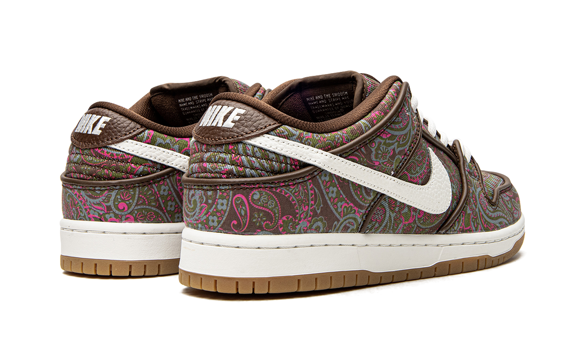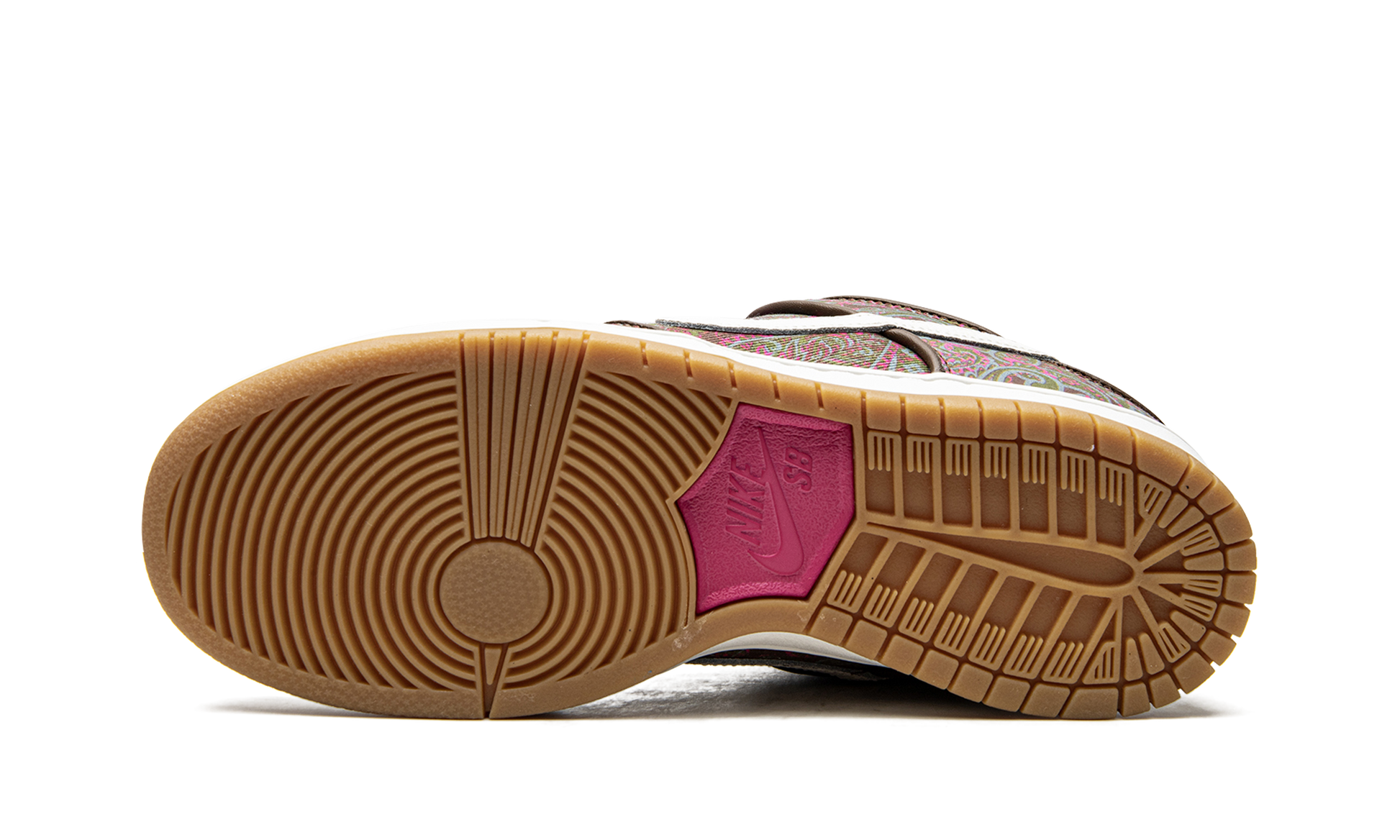 The Nike SB Dunk Low “Paisley” is a Spring 2022 release of the classic skate shoe in a colorway designed with a wear-away upper. Said to be inspired by 1970s-era T-shirts, the “Paisley” SB Dunk Low is a creative colorway that rivals that of any of Nike SB’s most unique designs. The shoe features a brown-based paisley print on its entire tear-away upper. A combination of green, pink, and burgundy hues are incorporated into the eye-catching paisley pattern. After considerable wear, the shoe’s upper will reveal a hidden white suede construction beneath the paisley material. Paisley Brown