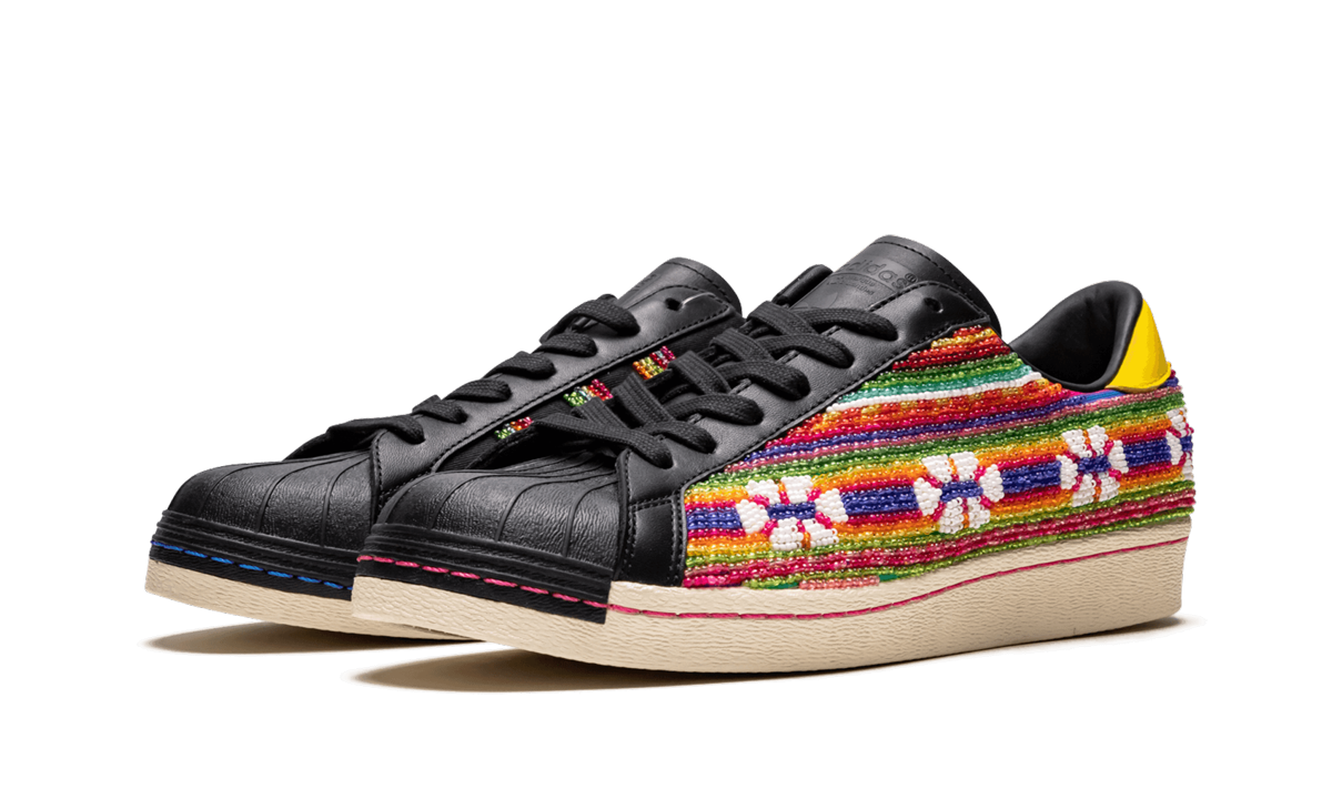 The Superstar 80S PIONEERS Pharrell shoe blends classic Adidas Superstar style with a unique design by Pharrell Williams, celebrating pioneers in music and culture.