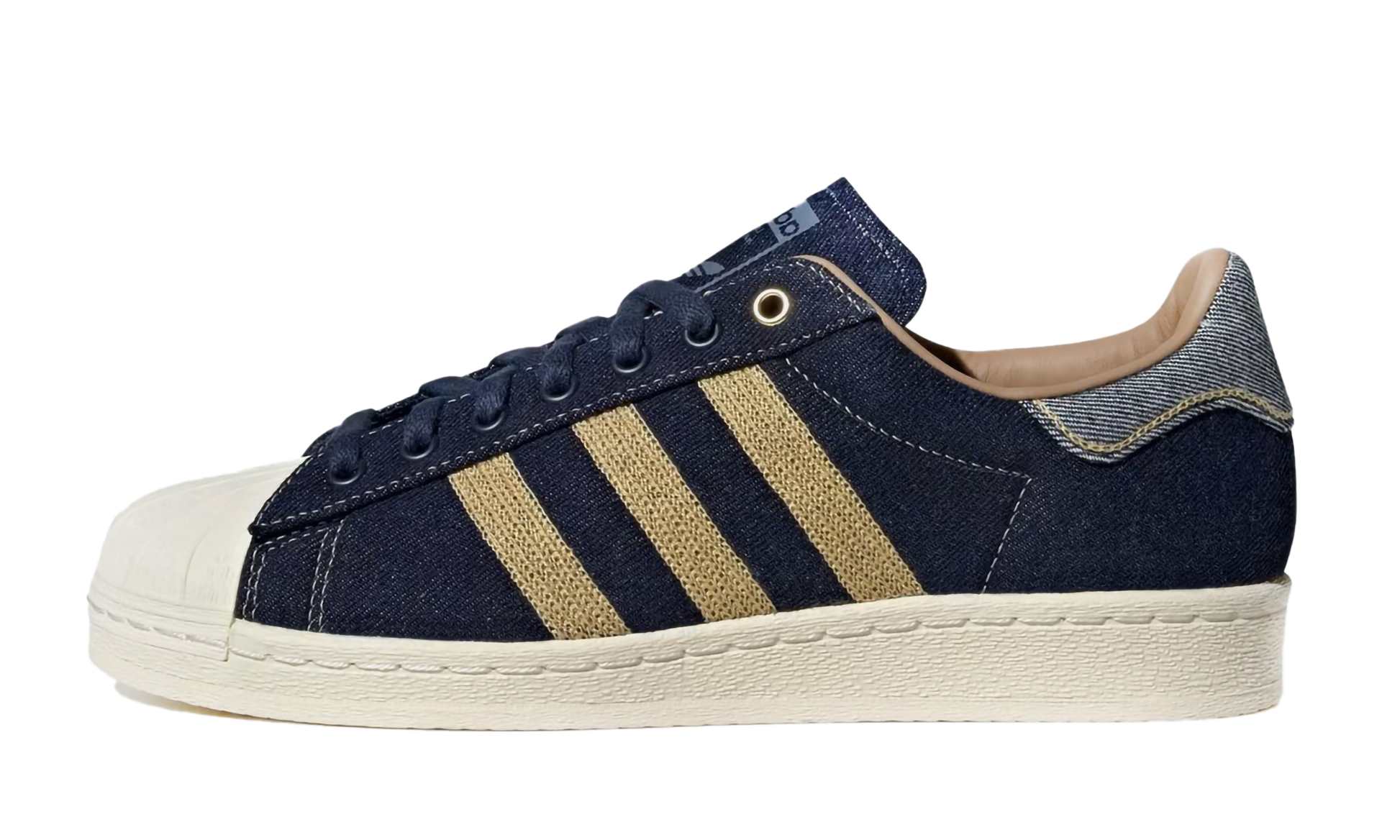 The Superstar shoe features a classic design, making it a versatile and timeless addition to any sneaker collection. Denim