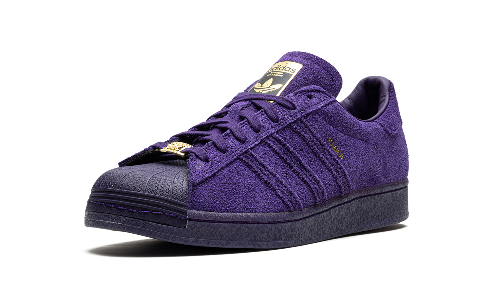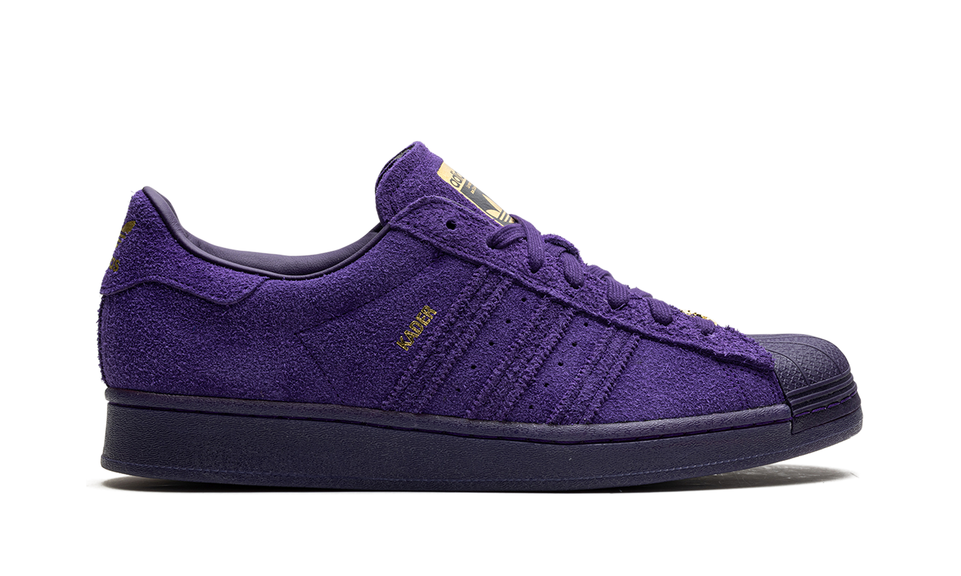 The Superstar ADV 'Kader - Sylla Dark Purple' shoe features a sleek dark purple colorway, offering a stylish and performance-ready take on the classic Superstar silhouette for skateboarding or everyday wear. Kader - Sylla Dark Purple