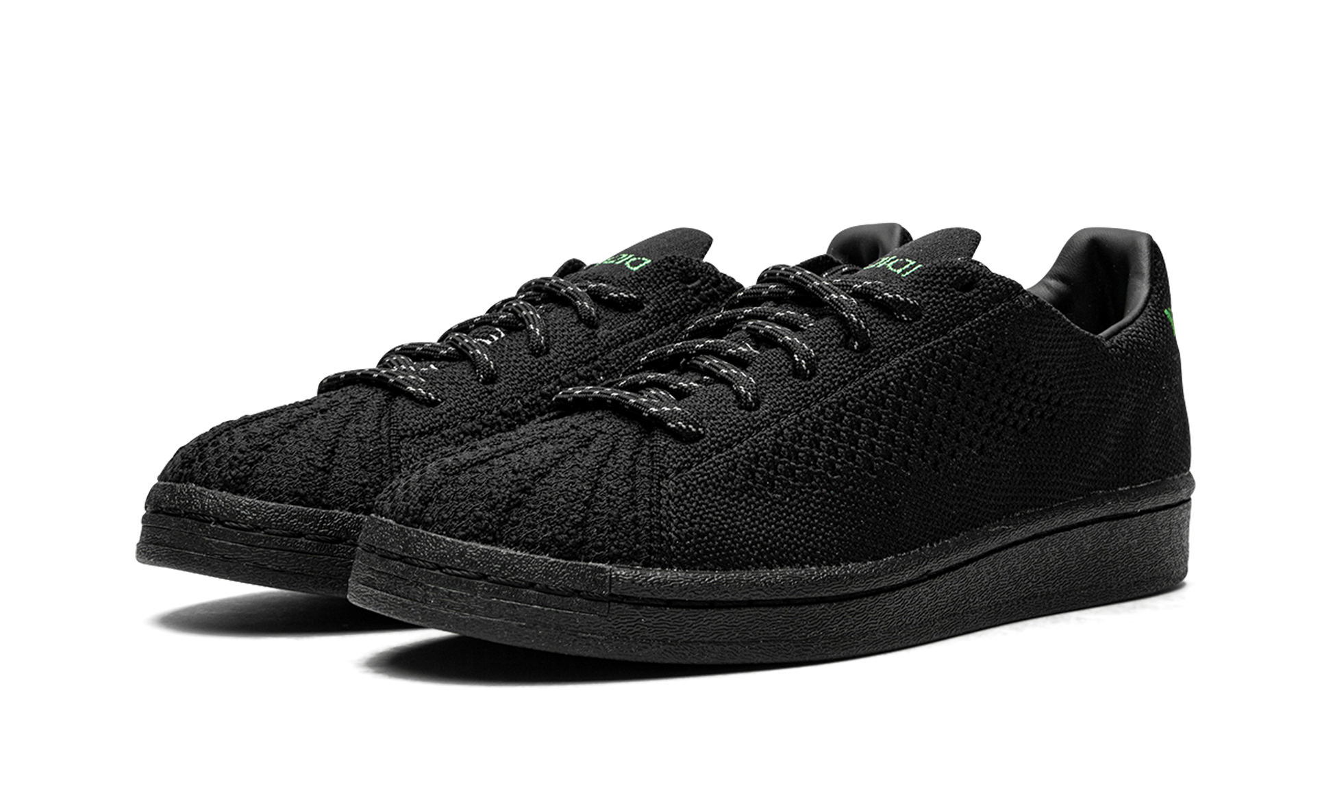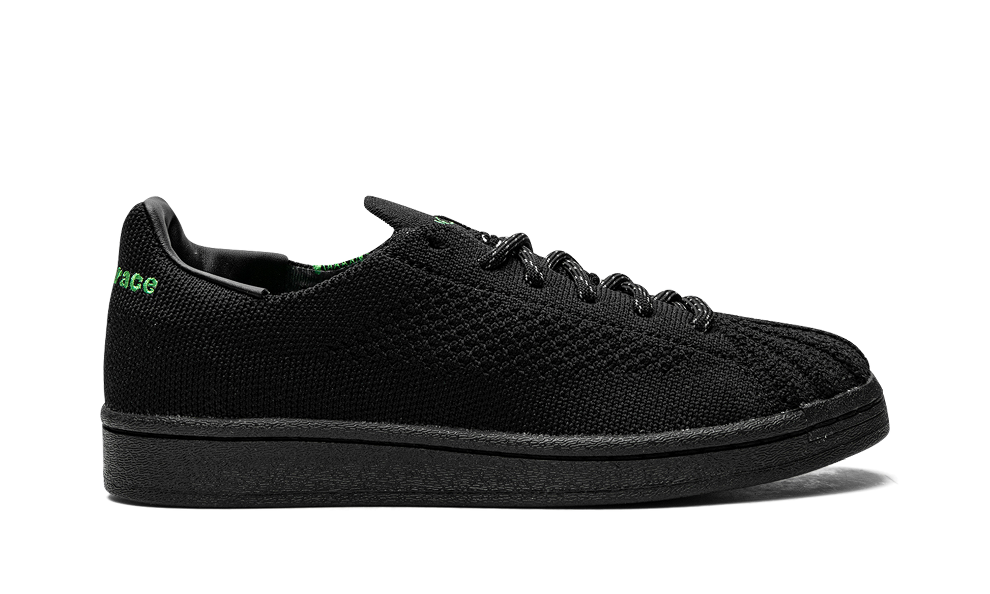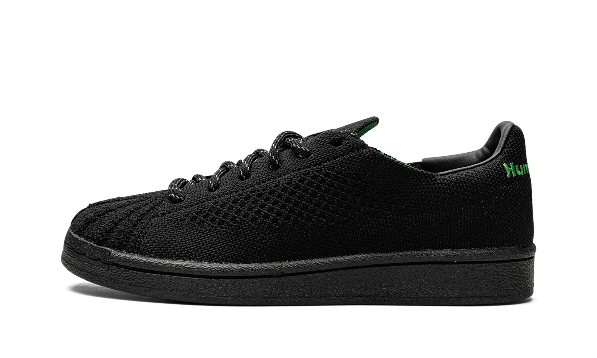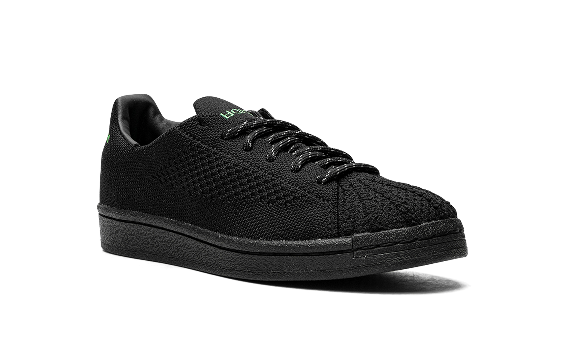 The Superstar Primeknit 'Pharrell Black' shoe combines classic Adidas Superstar style with a breathable Primeknit upper, designed in collaboration with Pharrell Williams for a modern and comfortable look in a sleek black colorway. Pharrell Black