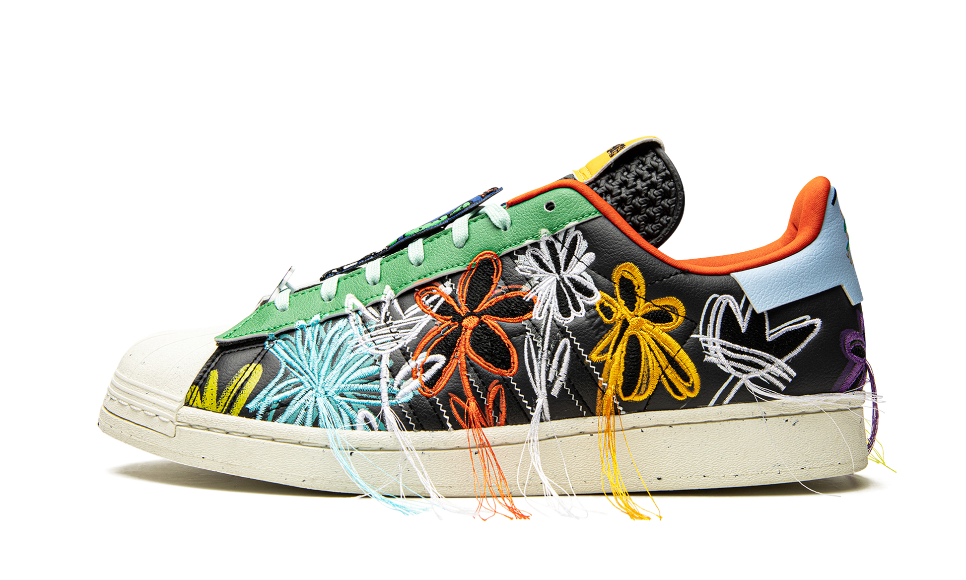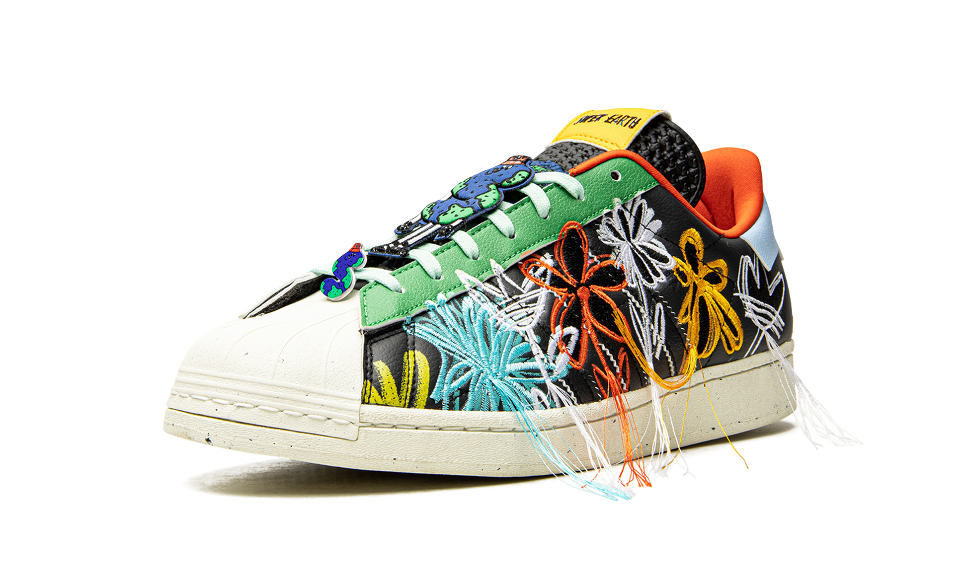 The Superstar 'Sean Wotherspoon - Superearth' shoe features a unique design by Sean Wotherspoon, incorporating sustainable materials and vibrant colors for a distinctive and eco-conscious take on the classic Superstar. Sean Wotherspoon - Superearth