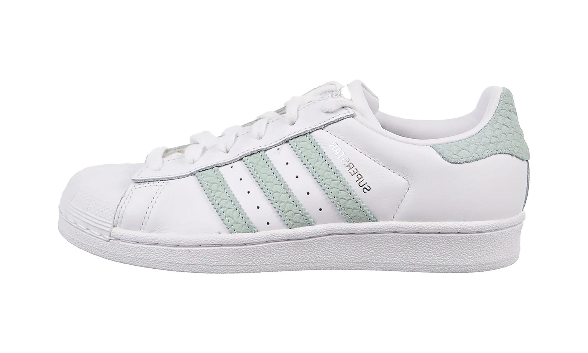 The Superstar WMNS 'White Ash Green' shoe features a classic design with a fresh colorway, offering a versatile and stylish addition to any sneaker collection. White Ash Green