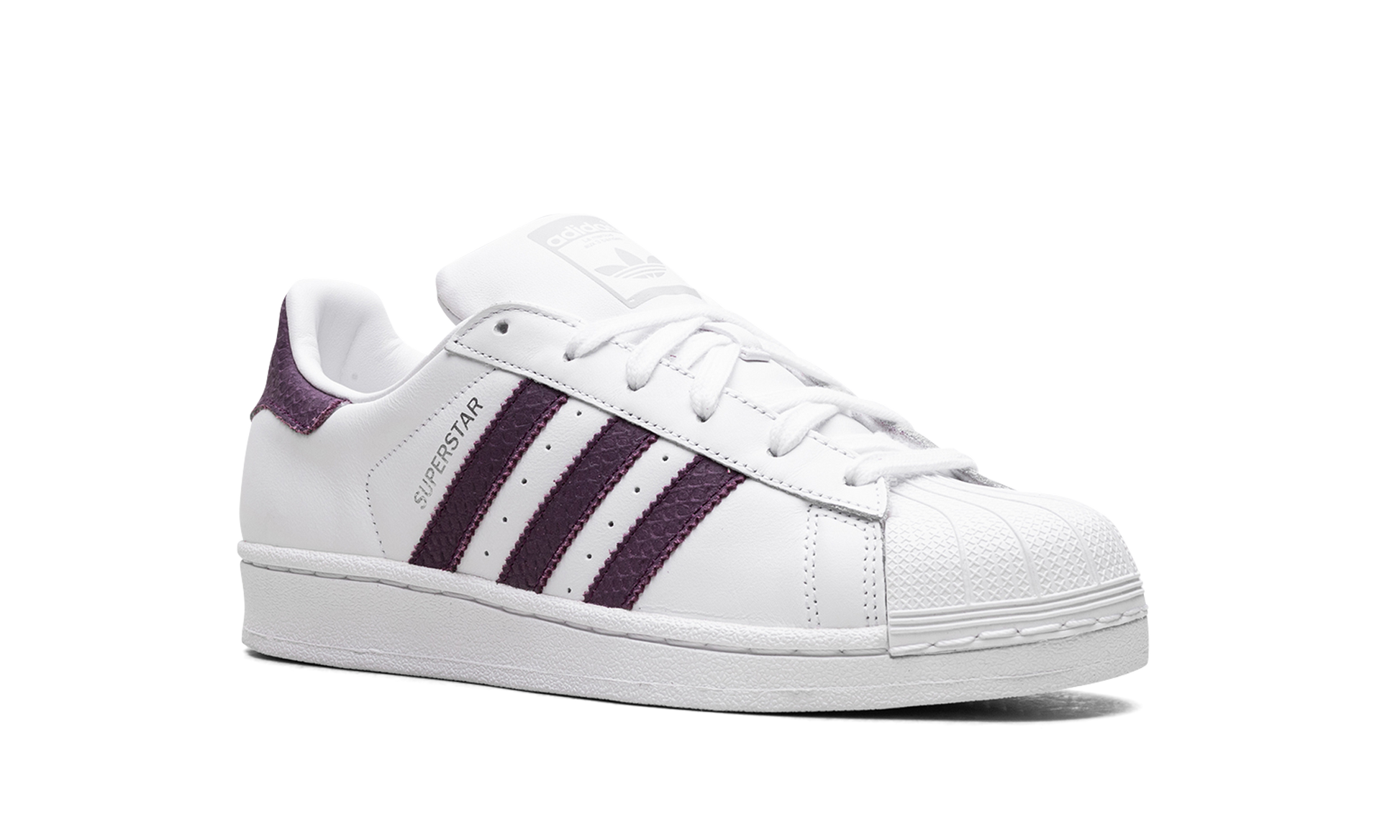 The Superstar WMNS 'White Red Night' shoe features a classic design with a clean white base, bold red accents, and subtle night-inspired details, offering a versatile and stylish addition to any sneaker collection. White Red Night