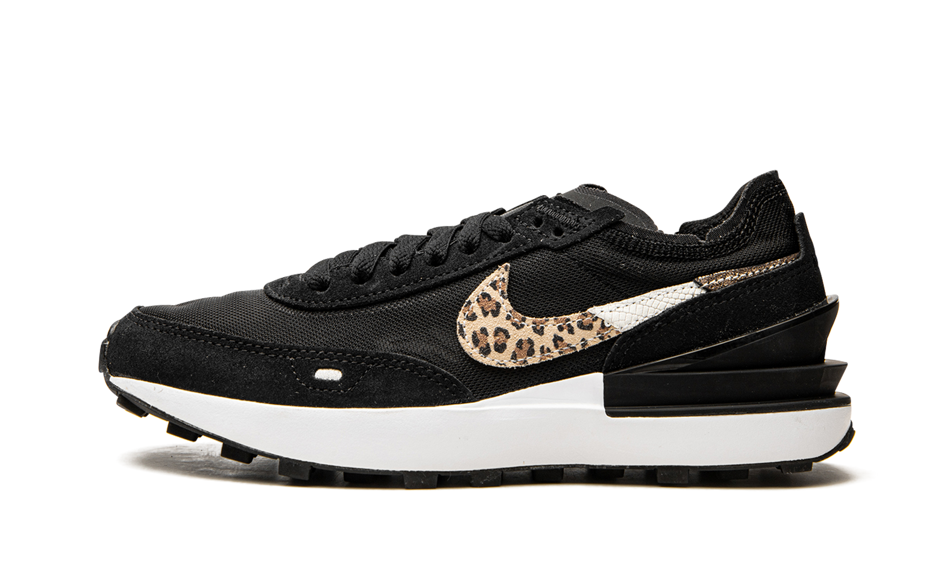 The Nike Waffle One “Leopard Pack - Black” is a lifestyle shoe that not only embraces Nike's rich heritage in running, but also adds in fresh innovations to give it a modern twist. Done in women's sizing, this Waffle One style is constructed with a black, transparent mesh upper with overlays, eyestays, and a heel tab in premium suede. Taking center stage is the mixed material, leopard-printed Swoosh on the side. Finally, rounding out the Nike sneaker is a black stacked heel counter joined with a white midsole and black rubber outsole. Black Leopard